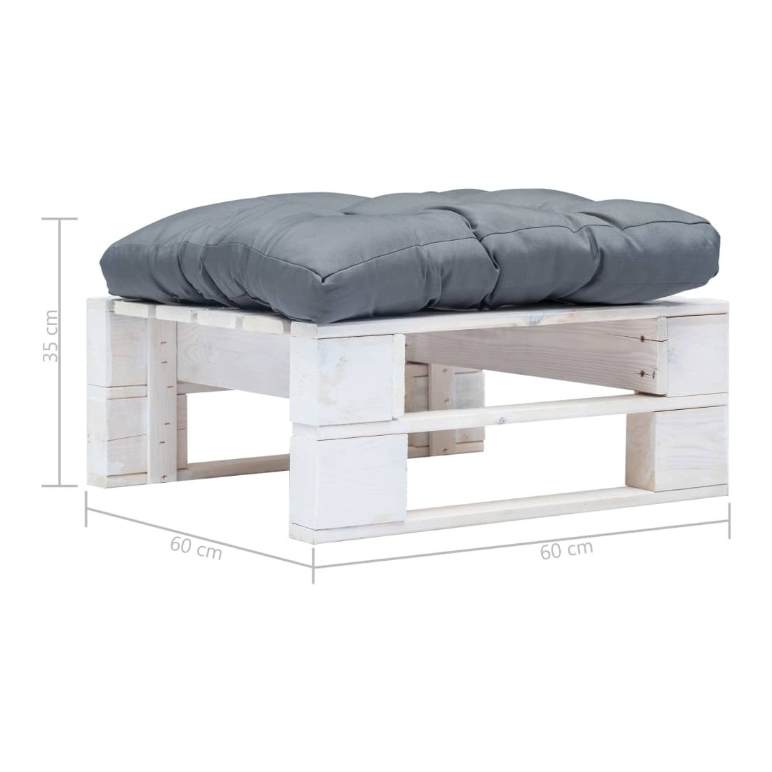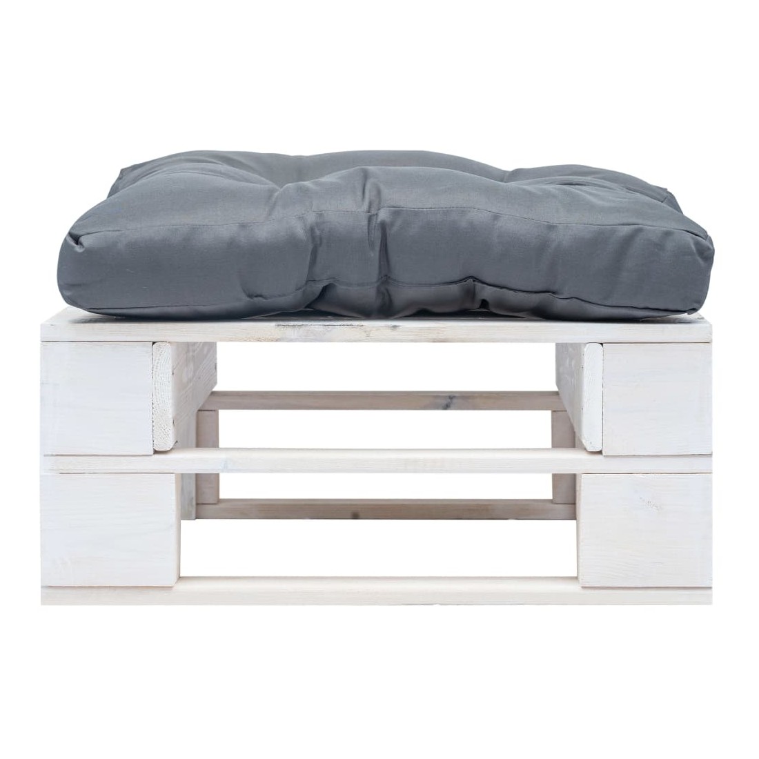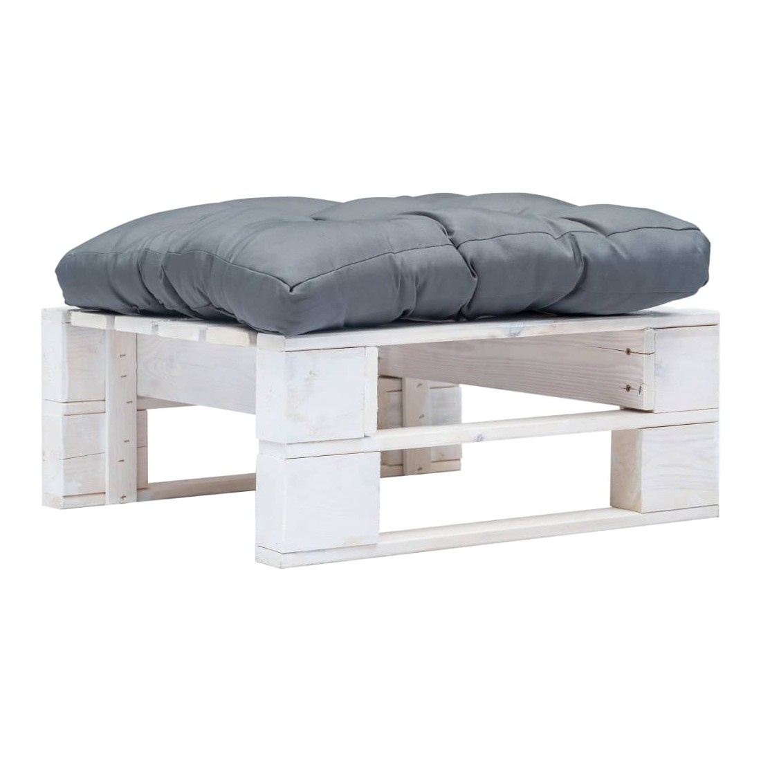 Repose-pied palette de jardin avec coussin gris Blanc Bois