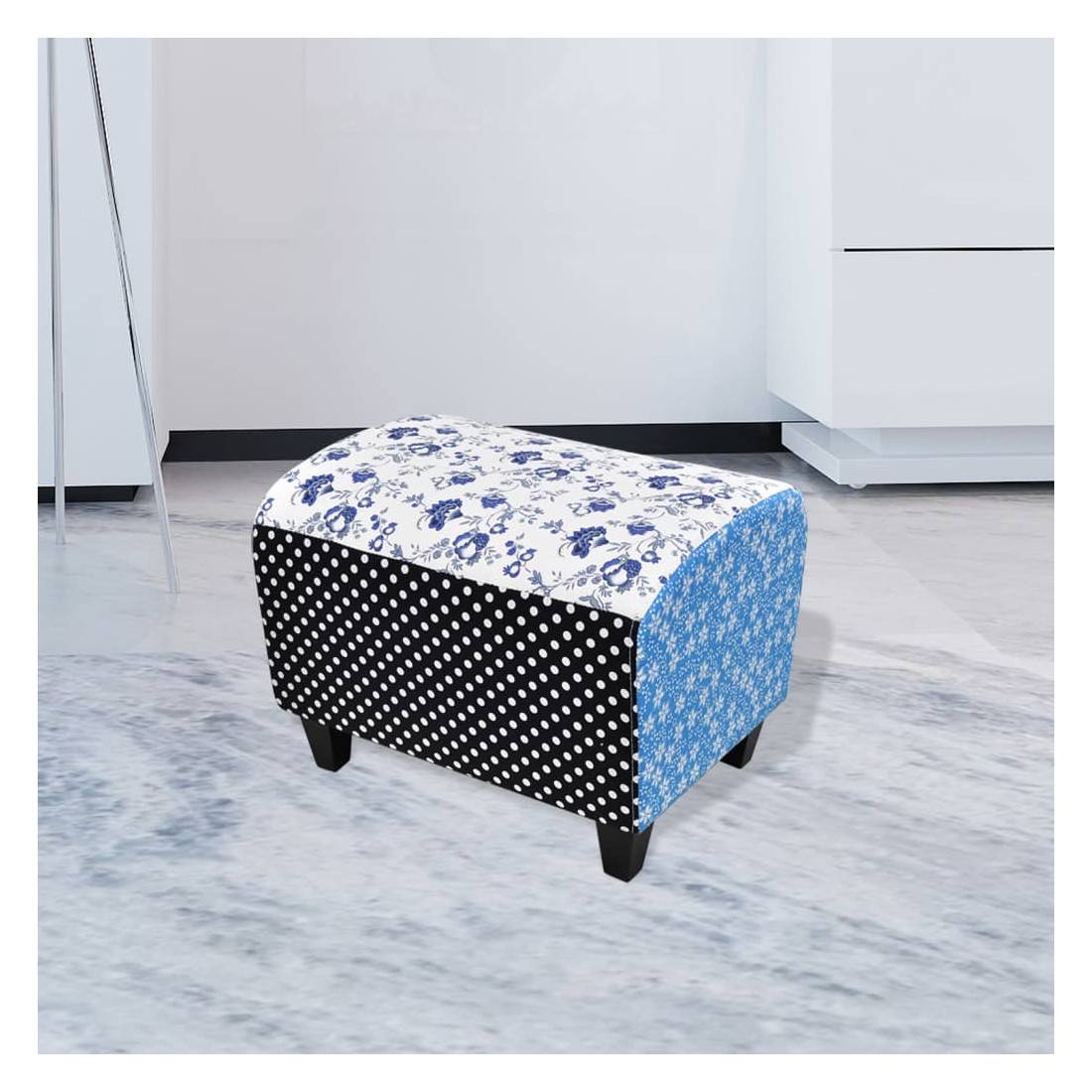 Le repose-pied avec patchwork dans un style campagnard est une bonne décoration et un bon mobilier pour tout décor intérieur comme une chambre à coucher, un salon, une salle familiale et un salon. Il donnera à coup sûr à votre espace une ambiance simple, naturelle, confortable et relaxante.Fabriqué avec un cadre en bois et recouvert d'un tissu, le repose-pied est conçu pour des années d'utilisation.