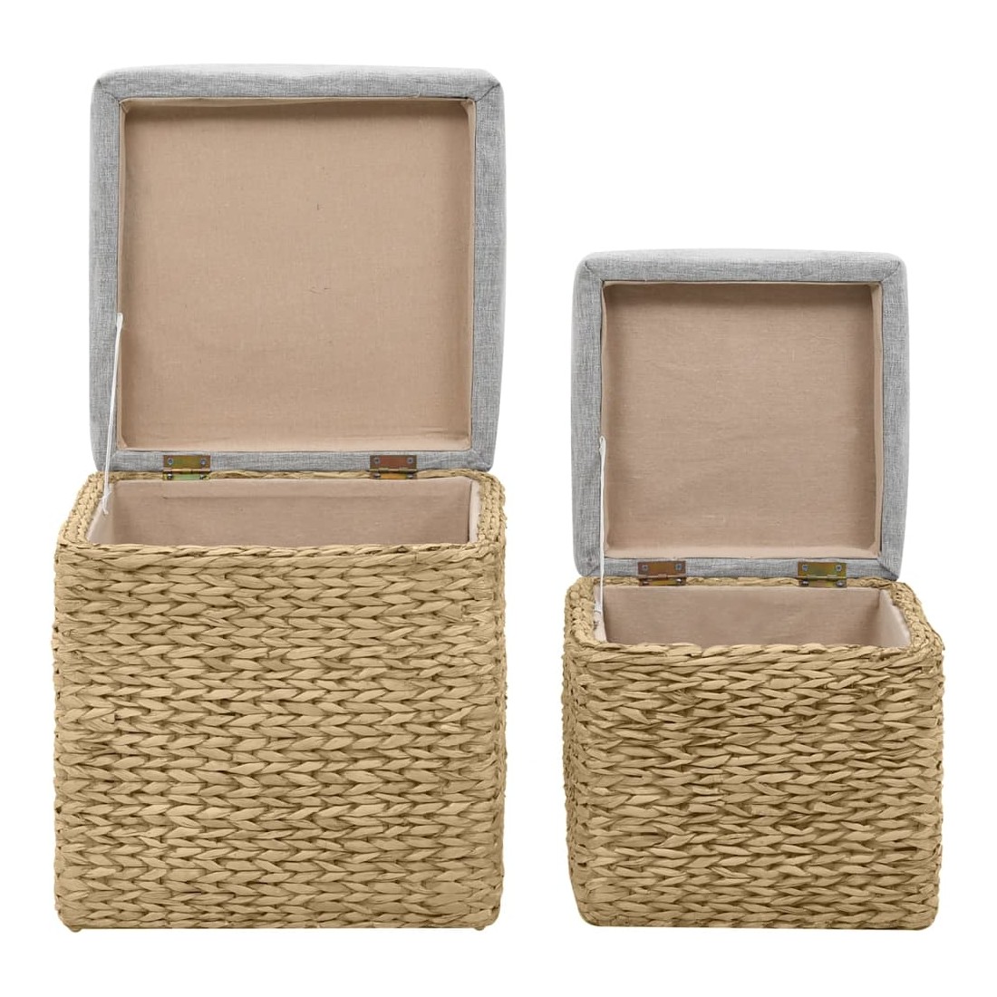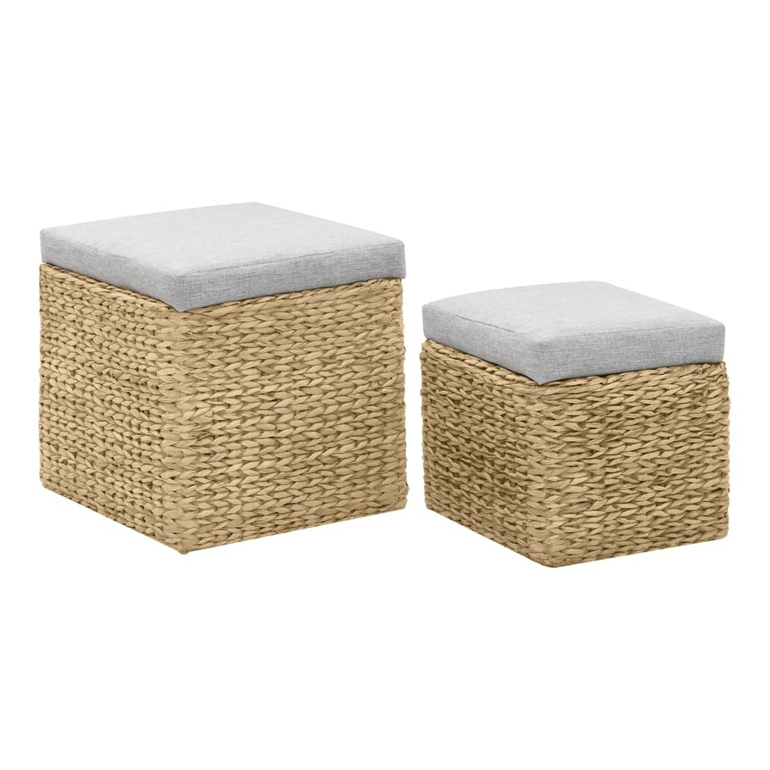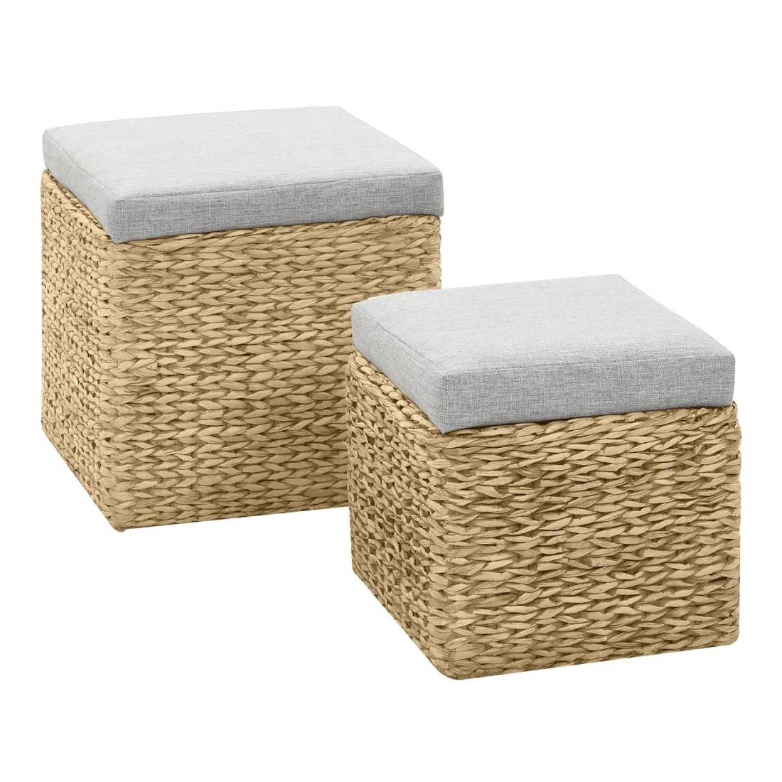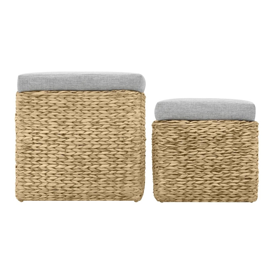 Cet ensemble de repose-pieds sera un supplément indémodable à votre décoration intérieure. Fabriqué en jacinthe d'eau, les poufs apporteront un charme rustique et naturel à votre pièce. L'ensemble offre un grand espace de rangement pour garder divers objets à portée de main et bien organisés. Les coussins contribuent au confort d'assise de l'ensemble. L'ensemble a été assemblé. Aucun assemblage n'est requis. La livraison comprend 2 repose-pieds de différentes tailles.
