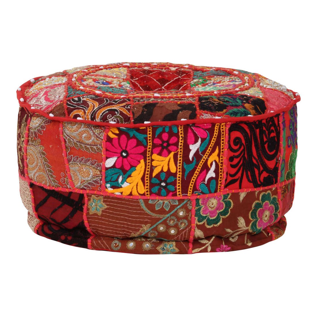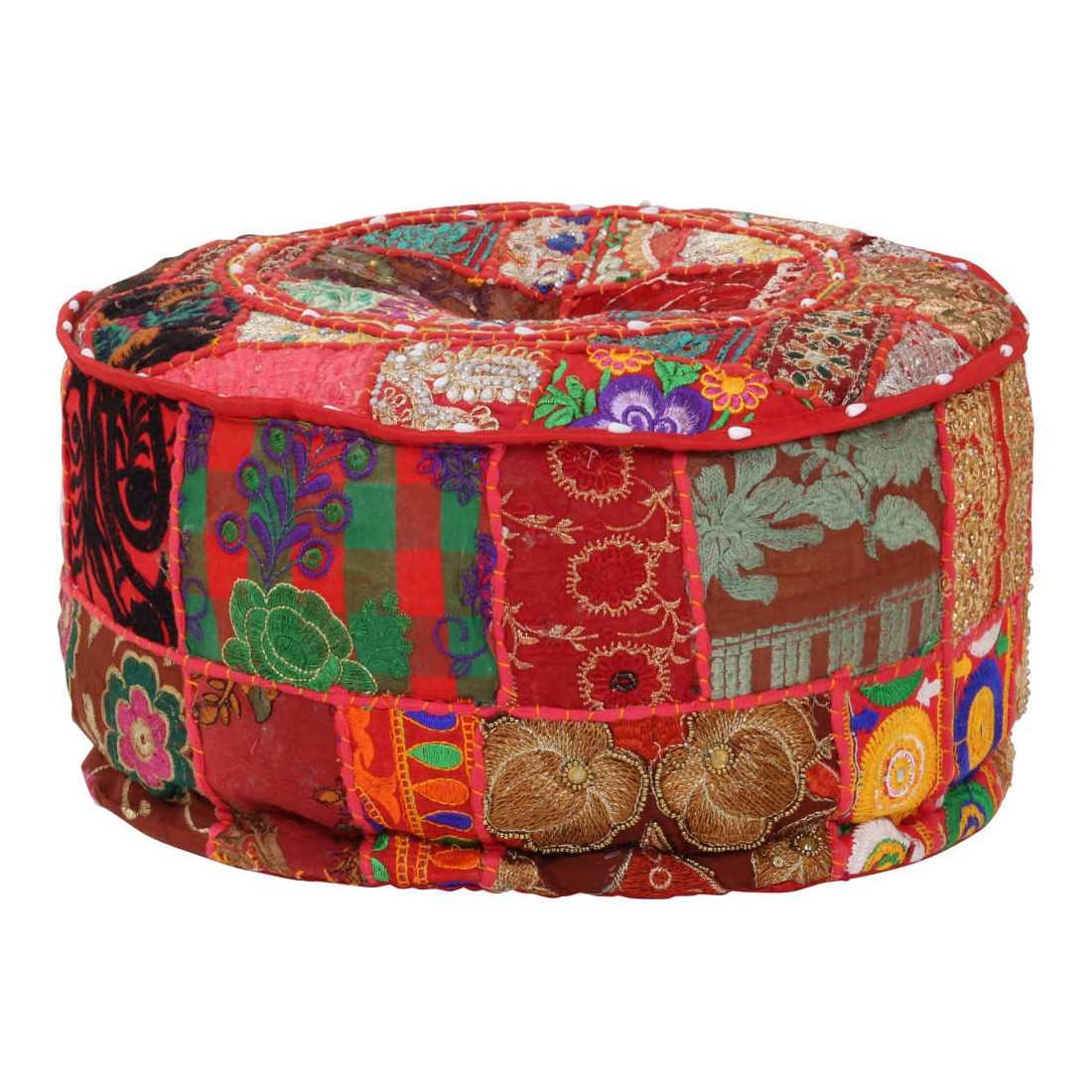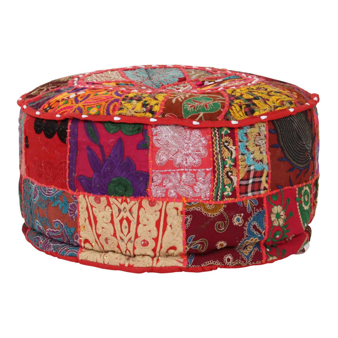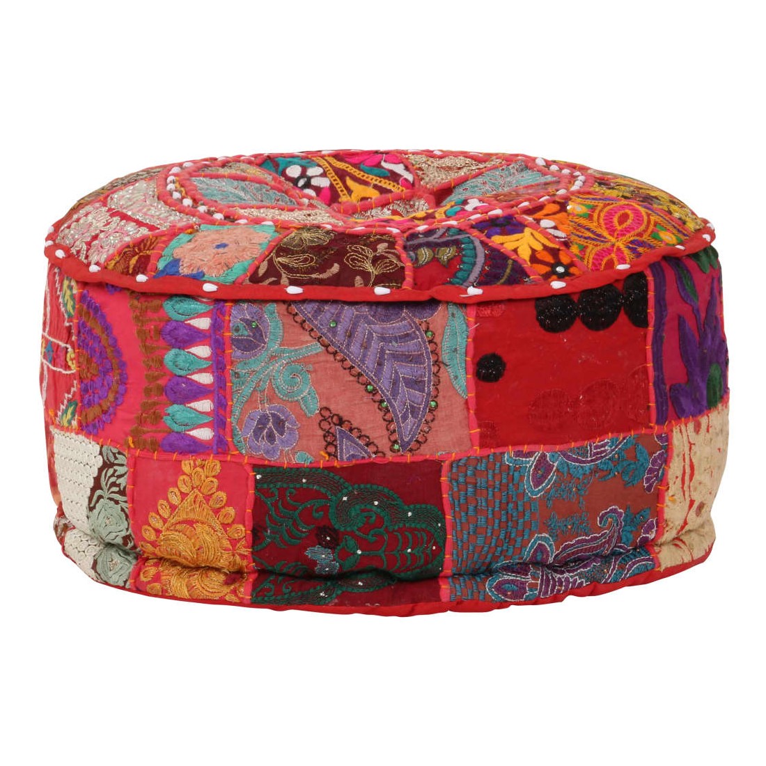 Profitez d'un moment de détente avec notre pouf fait à la main à l'aspect vintage ! Avec son design en patchwork, il attirera tous les regards dans tous les intérieurs. Ce pouf est fait à la main en 100 % coton et rembourré pour le rendre doux et confortable. Il est parsemé de broderies exotiques exquises pour apporter un style indien à votre intérieur. Placez le pouf devant un canapé ou un fauteuil pour créer une ambiance agréable dans n'importe quelle pièce. Veuillez noter que des légères différences entre chaque pièce peuvent être trouvées en raison de la nature faite à la main du produit.