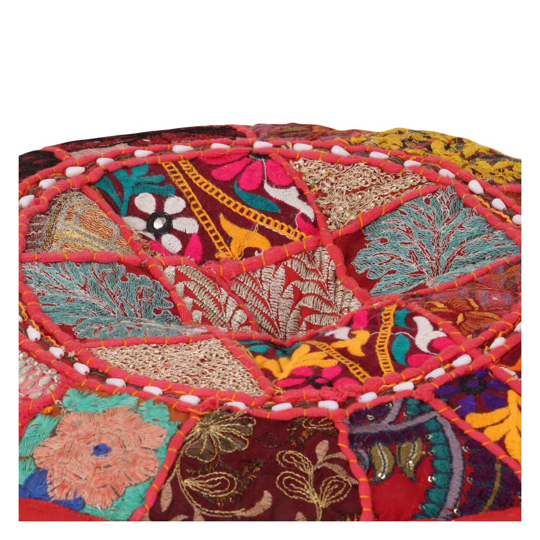 Pouf rond en coton fait à la main 40 x 20 cm Rouge