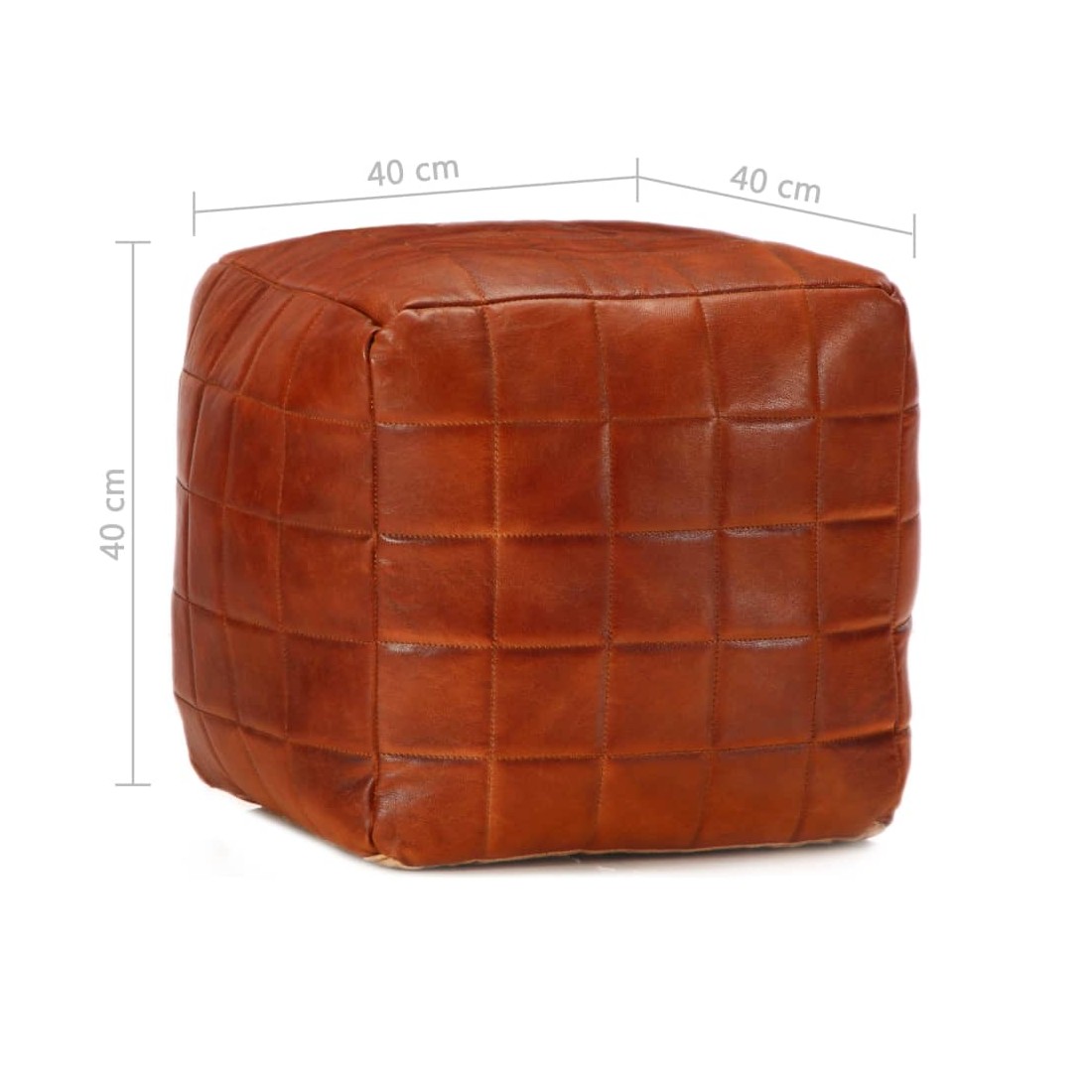 Asseyez-vous ou posez vos pieds sur notre pouf et détendez-vous ! Notre pouf moderne et tendance apportera une touche pratique et décorative à votre décoration intérieure. Le pouf est fait de cuir véritable de chèvre et rempli de coton pour le rendre très confortable. Placez le pouf devant un canapé ou un fauteuil, et il contribuera à une ambiance chaleureuse dans n'importe quelle pièce !