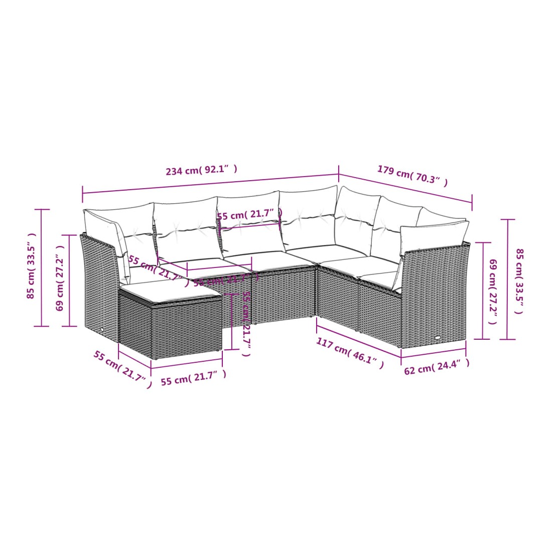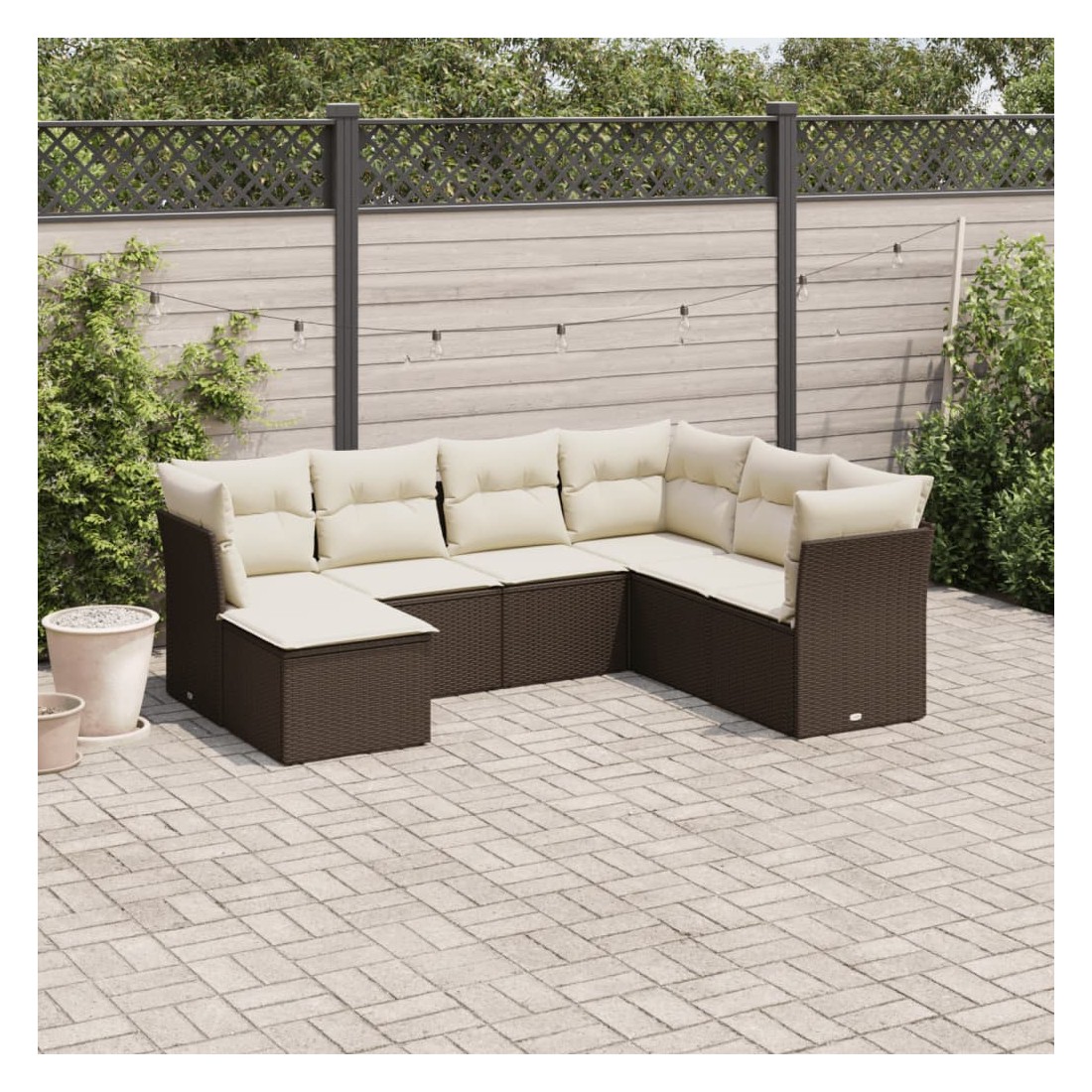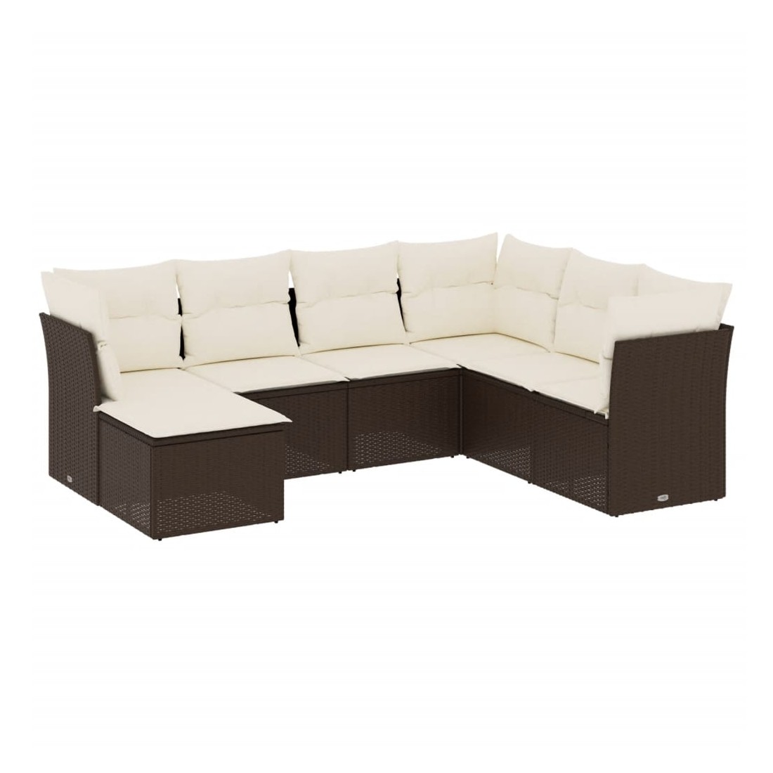 Salon de jardin avec coussins 7 pcs marron résine tressée
