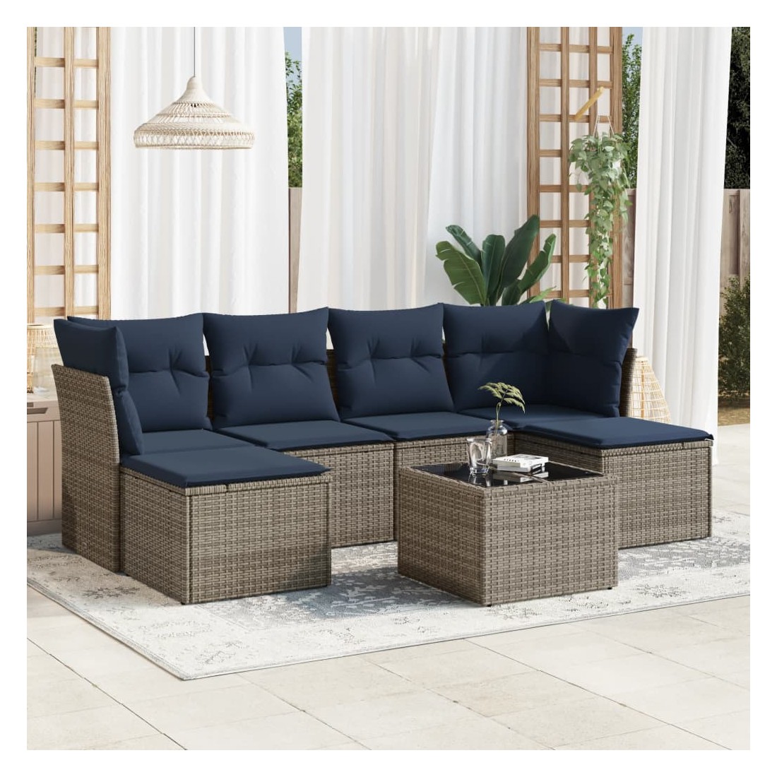 Cet ensemble de canapés de jardin est le complément parfait de votre arrière-cour, terrasse ou patio, offrant un espace confortable et accueillant pour discuter avec la famille et les amis ou simplement se détendre et profiter de l'extérieur. Matériau durable : la résine tressée, également connue sous le nom de poly rotin, est un matériau synthétique solide et nécessitant peu d'entretien qui ressemble au rotin naturel. Il est léger, facile à nettoyer et couramment utilisé pour les meubles d'extérieur en raison de sa durabilité et de ses propriétés de résistance aux intempéries.Expérience d'assise confortable : ce mobilier d'extérieur, doté de coussins épais, offre une expérience d'assise confortable.Dessus en verre : le dessus de la table d'extérieur est fabriqué en verre trempé solide et durable, ce qui le rend facile à nettoyer avec un chiffon humide et ajoute une touche d'élégance à votre espace extérieur.Housse amovible et lavable : ces coussins de siège sont dotés de housses amovibles pour un lavage et un entretien faciles.Conception modulaire : cet ensemble de meubles d'extérieur a une conception modulaire, ce qui le rend complètement flexible et facile à déplacer, afin que vous puissiez créer un agencement de meubles d'extérieur personnalisé. Bon à savoir :Pour que vos meubles d'extérieur restent beaux, nous vous recommandons de les protéger avec une housse imperméable.