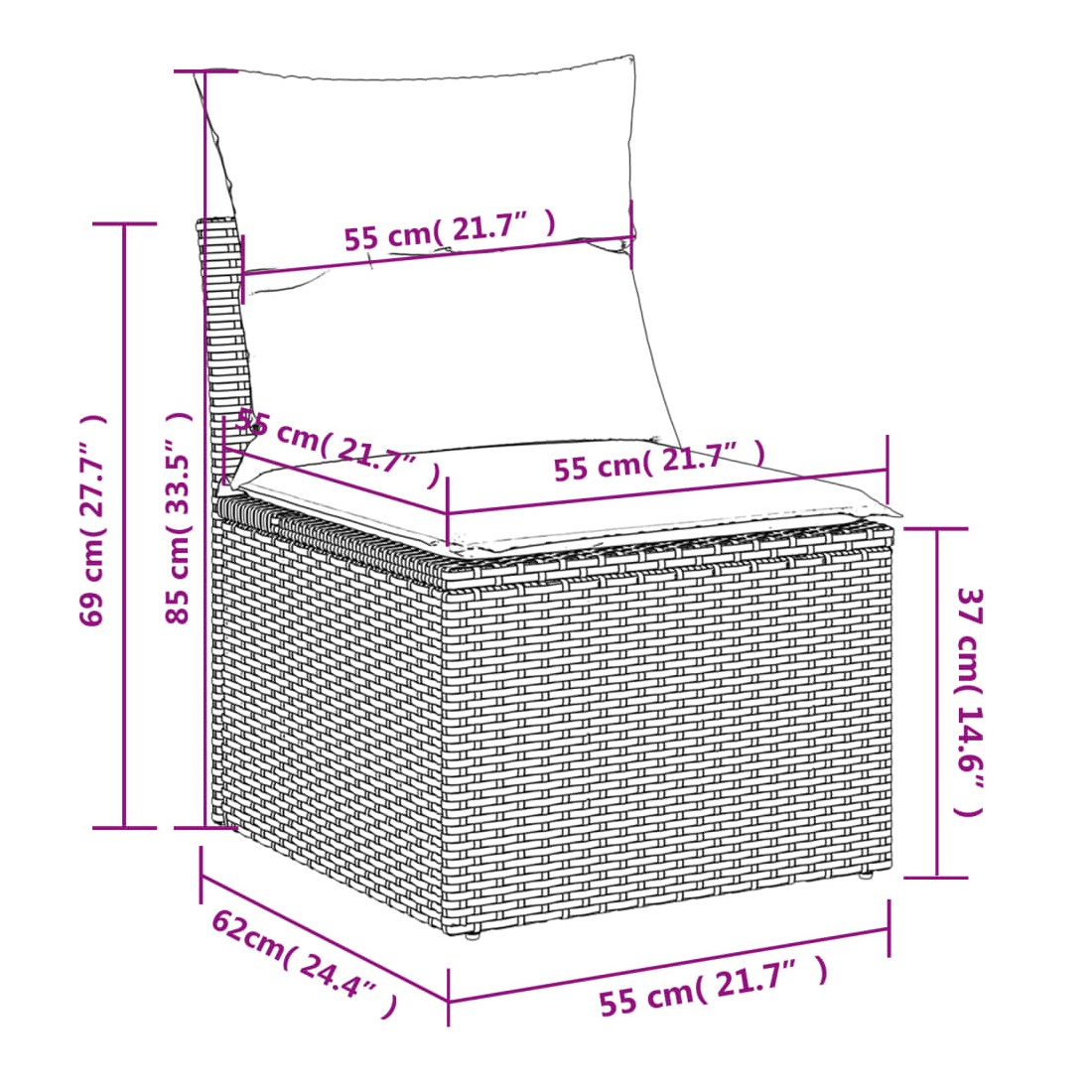 - Dimensions du coussin de siège : 55 x 55 x 3 cm (l x P x é)