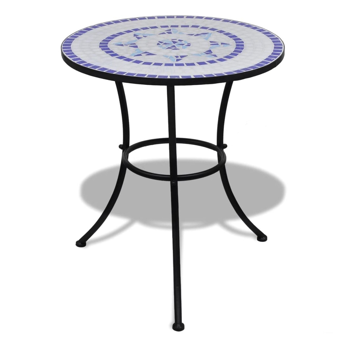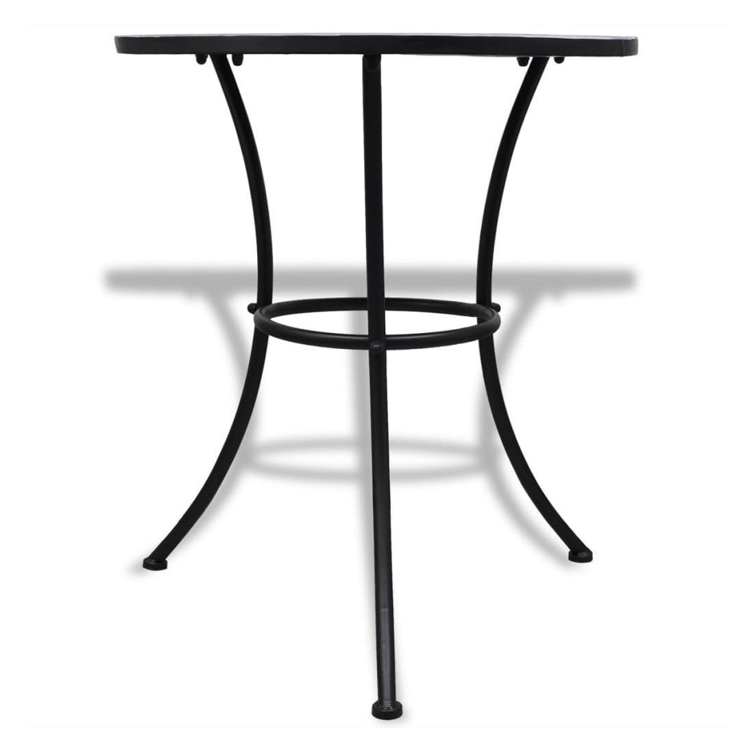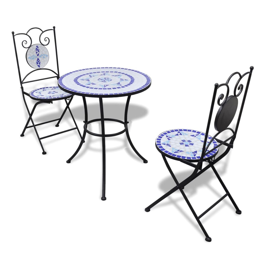 Ajoutez une touche romantique à votre jardin, terrasse ou balcon avec cet ensemble de bistrot en mosaïque. Ce sera un grand plaisir de discuter avec vos amis ou de prendre une tasse de thé tout en vous relaxant sur cet ensemble de mobilier de jardin décoratif et fonctionnel. Grâce à son cadre en fer enduit de poudre fort, cet ensemble est robuste et durable. Grâce au dessus de table et aux sièges en carreaux de céramique imperméables à l'eau, cet ensemble est facile à nettoyer. La livraison comprend 1 table et 2 chaises. Veuillez noter que cet ensemble ne convient pas à l'extérieur part temps froid.