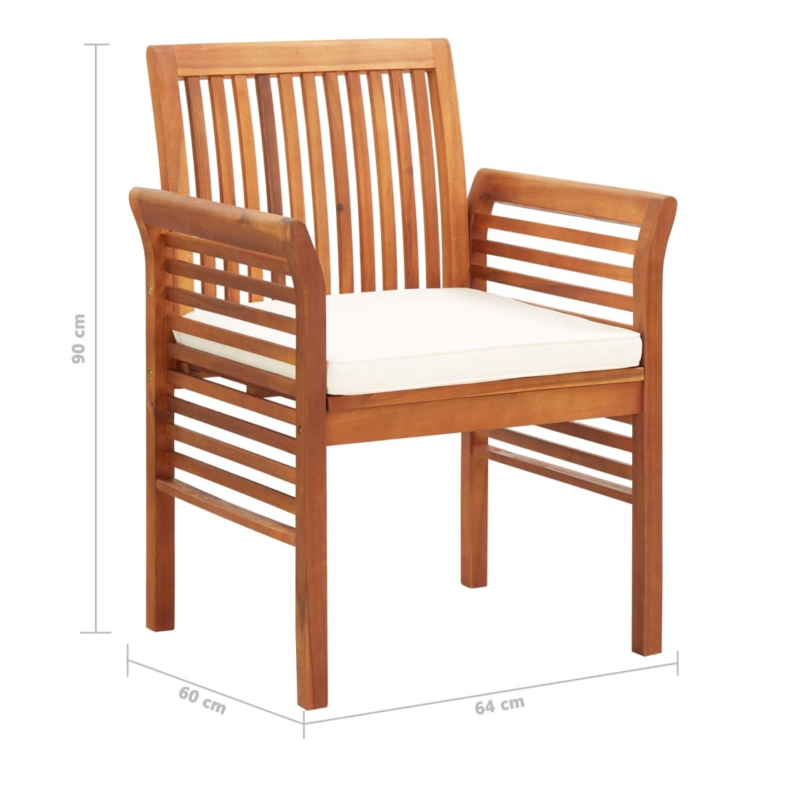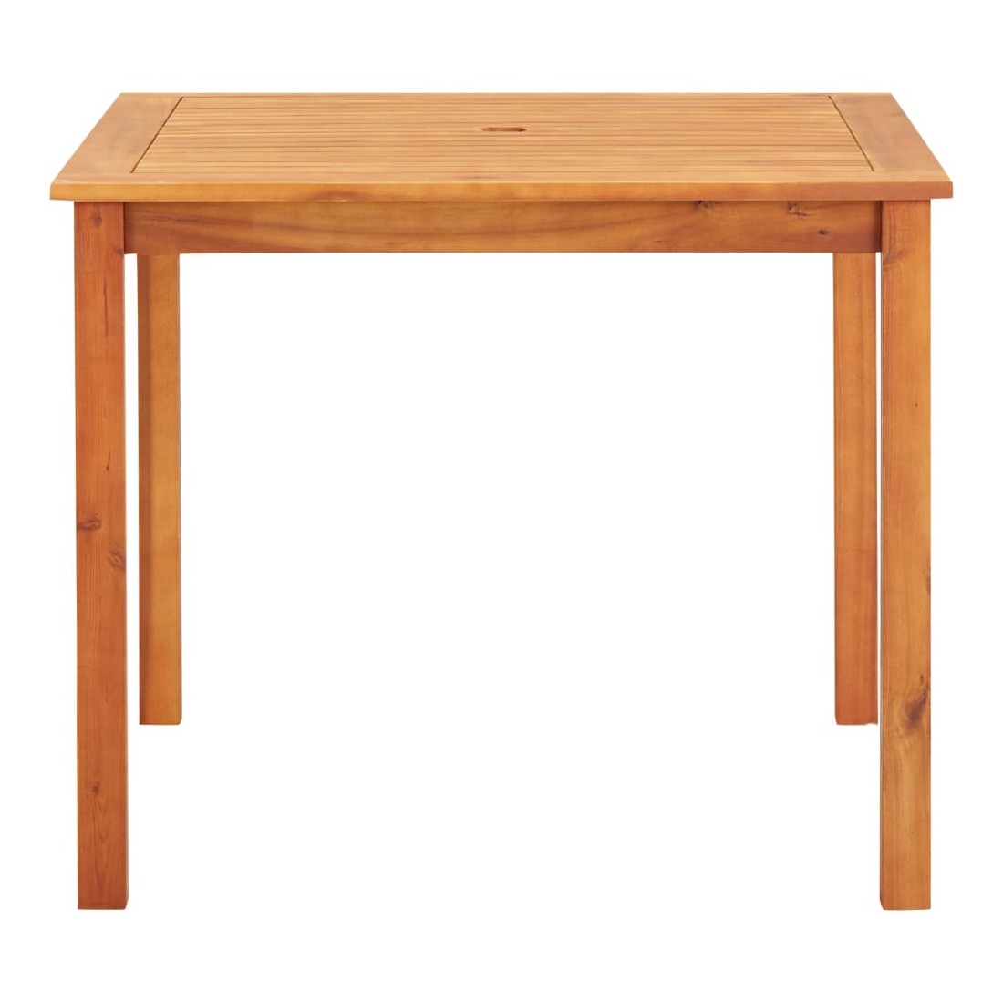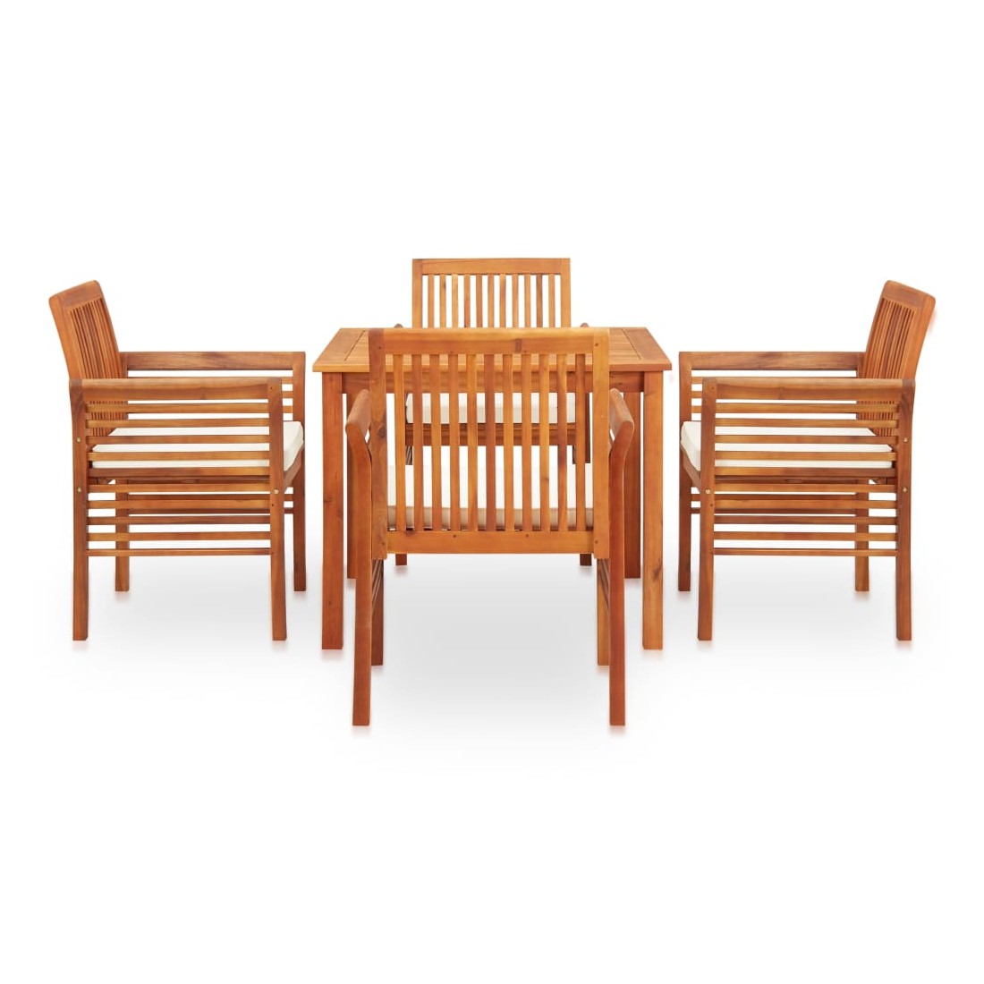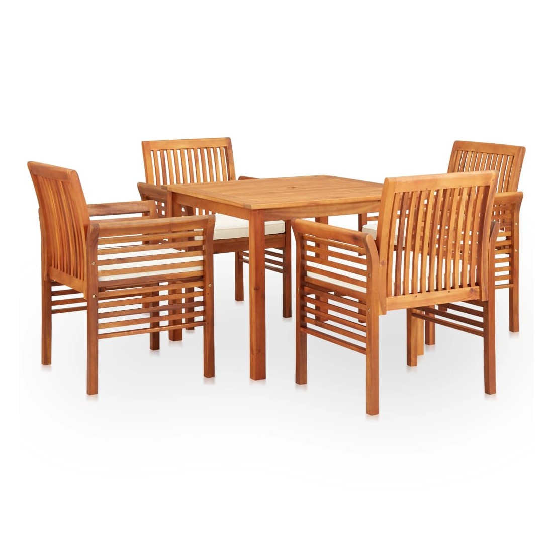 Donnez à votre terrasse ou votre arrière-cour un bel aspect naturel avec notre ensemble de salle à manger de 5 pièces simple mais élégant. Vous pouvez facilement profiter d'un bon repas en plein air avec les membres de votre famille et vos amis ! La table et les chaises sont en bois d'acacia massif avec une finition à l'huile et ont un design à lattes, qui est résistant aux intempéries et adapté à une utilisation à l'extérieur. La surface à l'huile est également facile à nettoyer. Équipé de coussinets en mousse confortables, vous pouvez passer tous vos moments de détente à l'extérieur dans un grand confort. Lorsqu'il n'est pas utilisé, vous pouvez couvrir ou ranger l'appareil pour prolonger sa durée de vie. La livraison comprend 1 table à manger et 4 chaises de salle à manger.