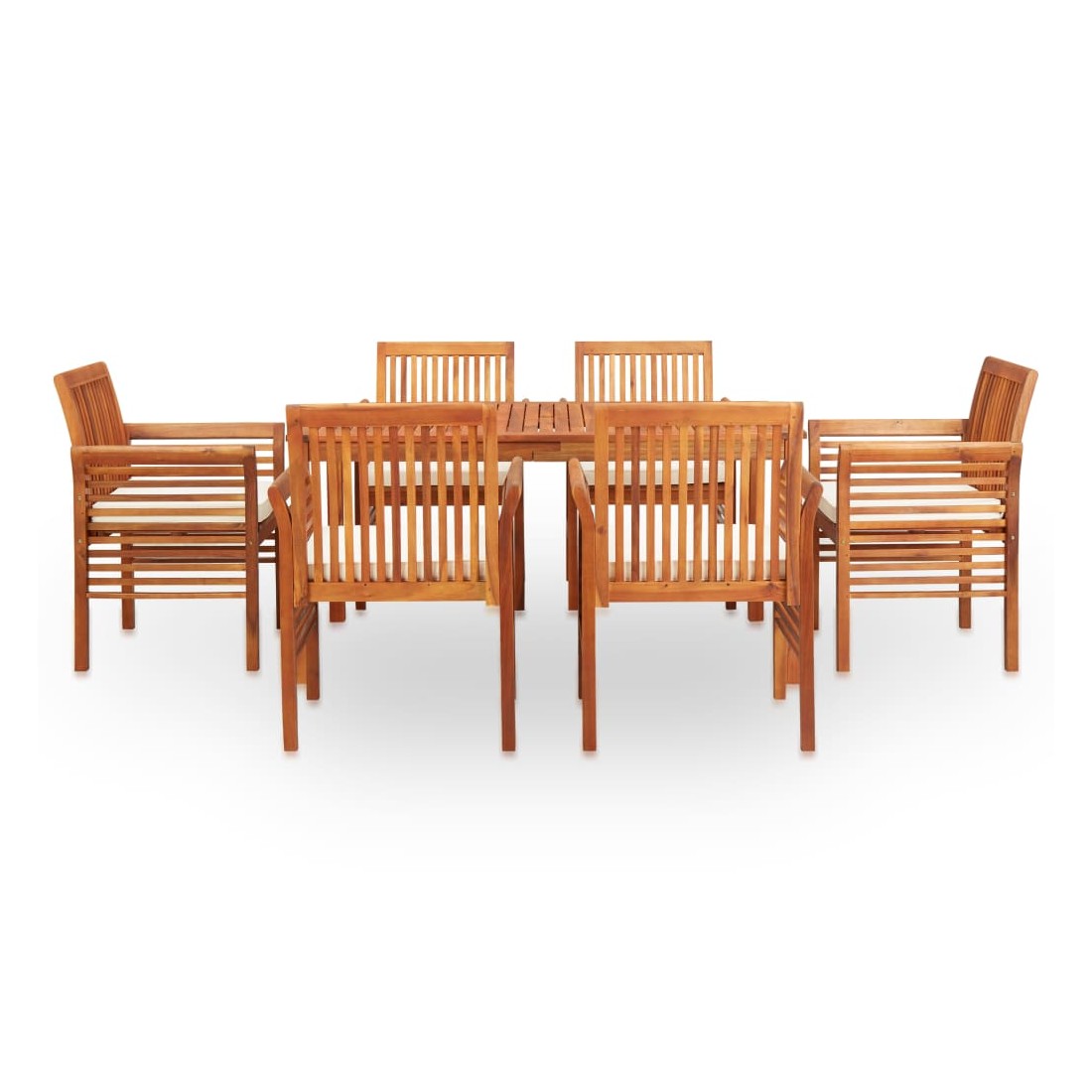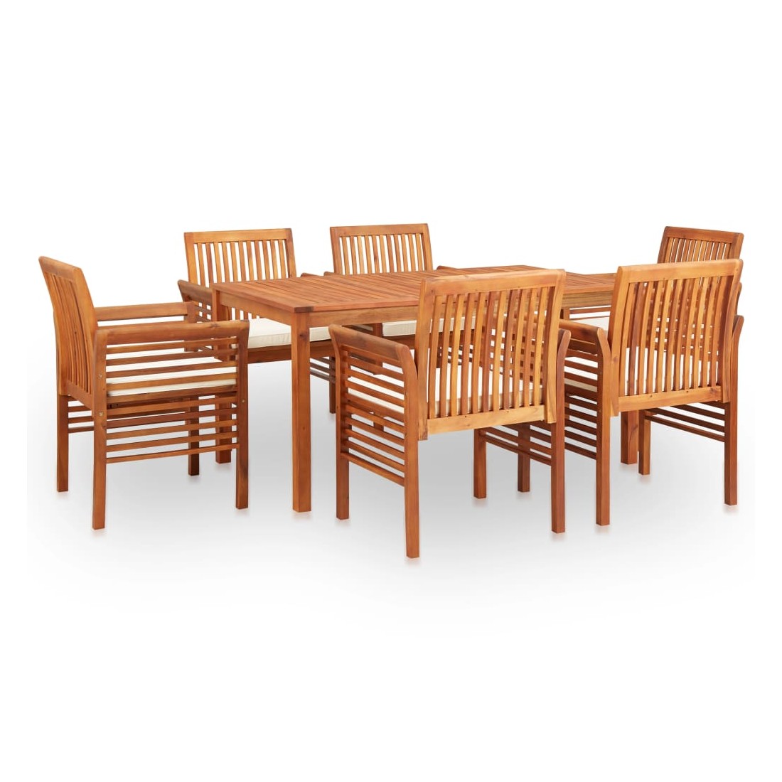 Ensemble à manger d'extérieur 7 pcs et coussins Acacia solide