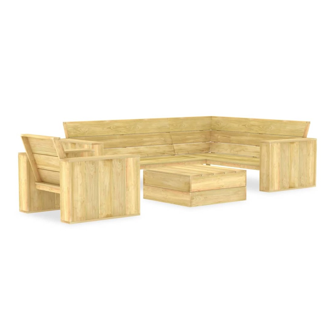 Notre salon de jardin sera un choix parfait pour l'heure du café ou pour vous détendre. L'ensemble de mobilier dégage un charme rustique et sera un supplément attrayant à votre jardin, terrasse ou patio. Cet ensemble de mobilier de jardin est en bois de pin imprégné, résistant aux intempéries et très durable. Les accoudoirs contribueront à votre confort d'assise. La table à thé peut contenir vos livres et cafés, et peut également servir de repose-pied. Le mobilier de jardin doit être assemblé. Veuillez noter que le bois est un produit naturel et peut présenter des imperfections.