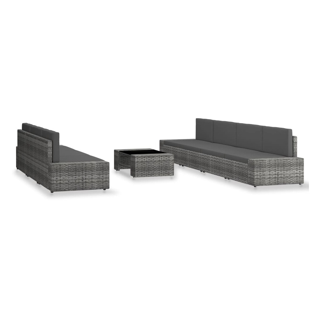 Ce salon de jardin en résine tressée est une combinaison parfaite de style et de fonctionnalité. Avec cela dans votre jardin, vous pouvez passer du temps relaxant et apaisant avec votre famille et vos amis. Grâce à la résine tressée résistante aux intempéries, le siège est facile à nettoyer, résistant à l'usure et adapté à un usage quotidien. Le canapé est doté d'un cadre en acier enduit de poudre robuste, qui est très durable. Les coussins d'assise et de dossier amovibles sont bien rembourrés, afin d'offrir un grand confort d'assise. Une table basse au design sobre peut contenir vos livres, magazines et du thé pour un moment apaisant et relaxant. De plus, grâce à sa conception modulaire, toutes les pièces peuvent être arrangées et personnalisées selon vos besoins. Cet ensemble de sièges sera sûrement le point de mire de votre jardin ou patio. Remarque : nous vous recommandons de couvrir l'ensemble pendant la pluie, la neige et le gel.