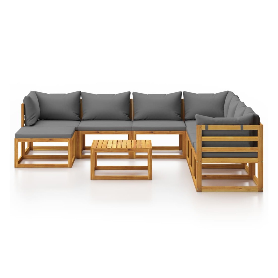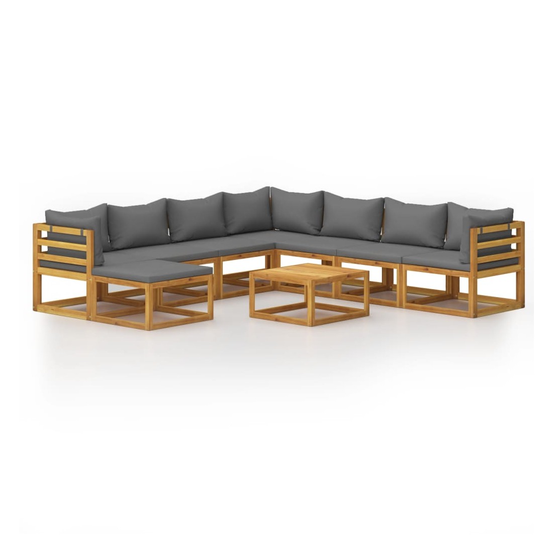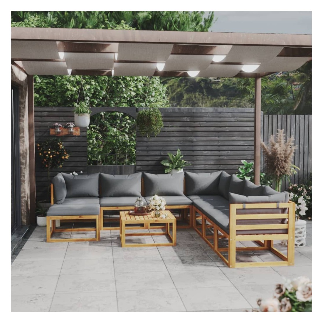 Salon de jardin 9 pcs avec coussin Bois d'acacia solide
