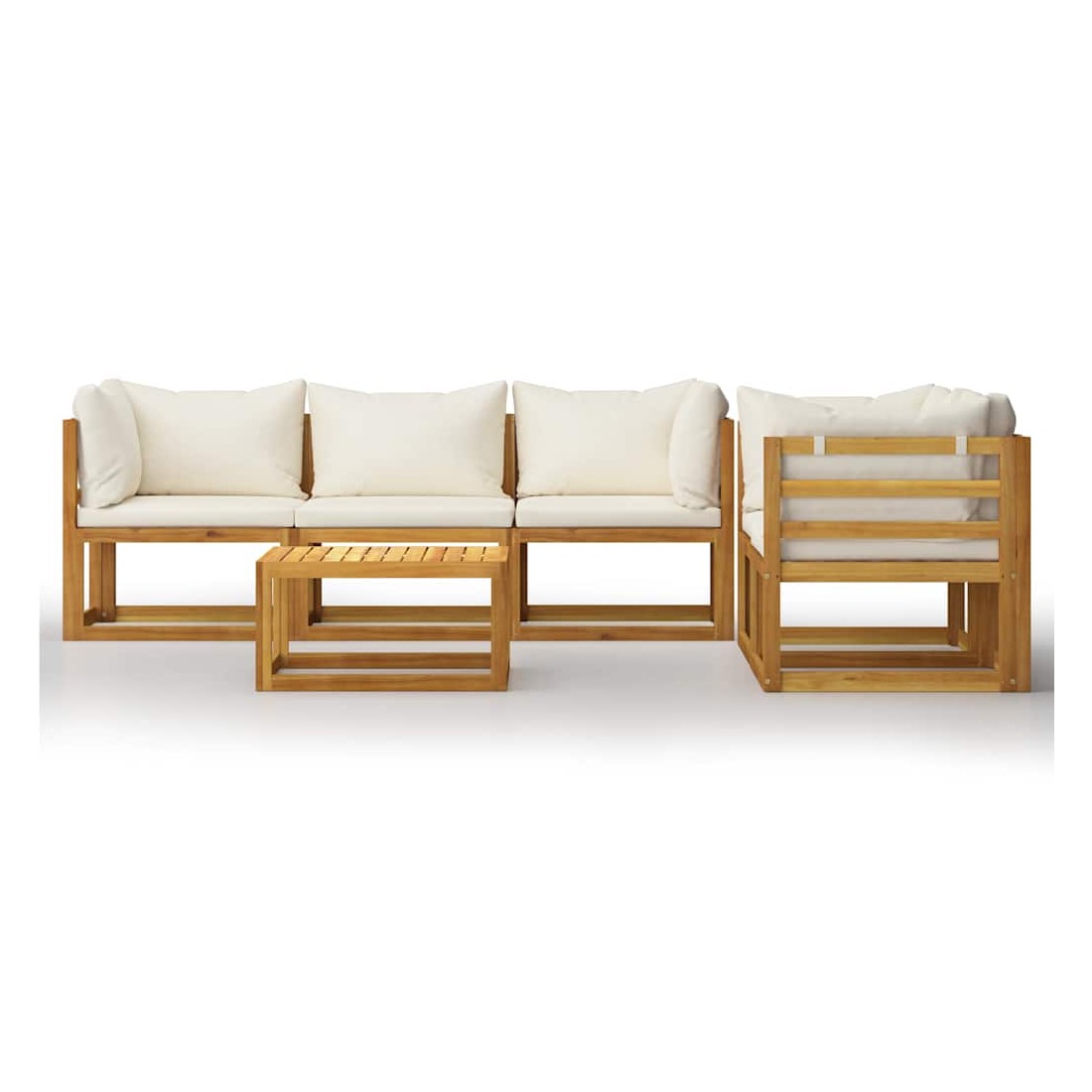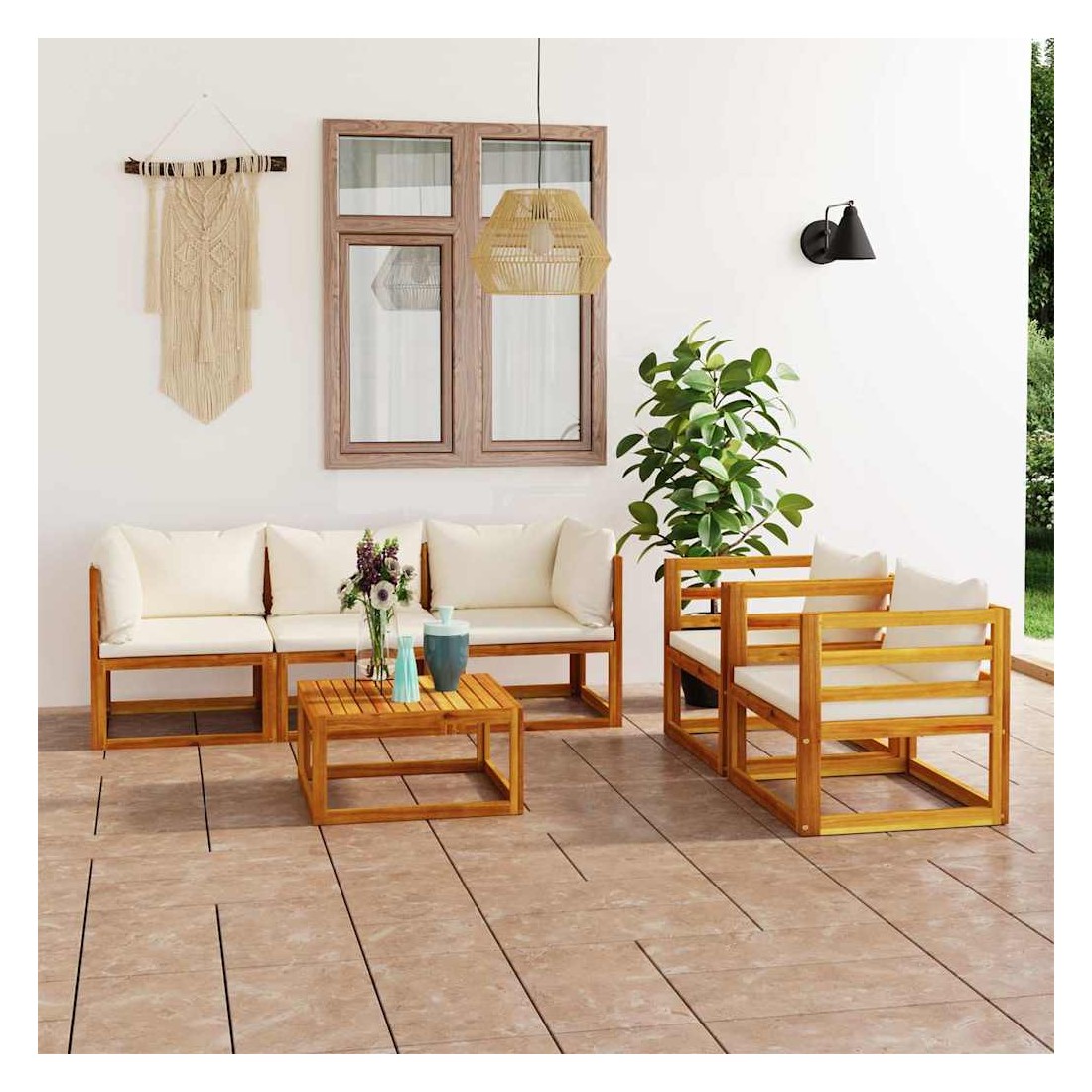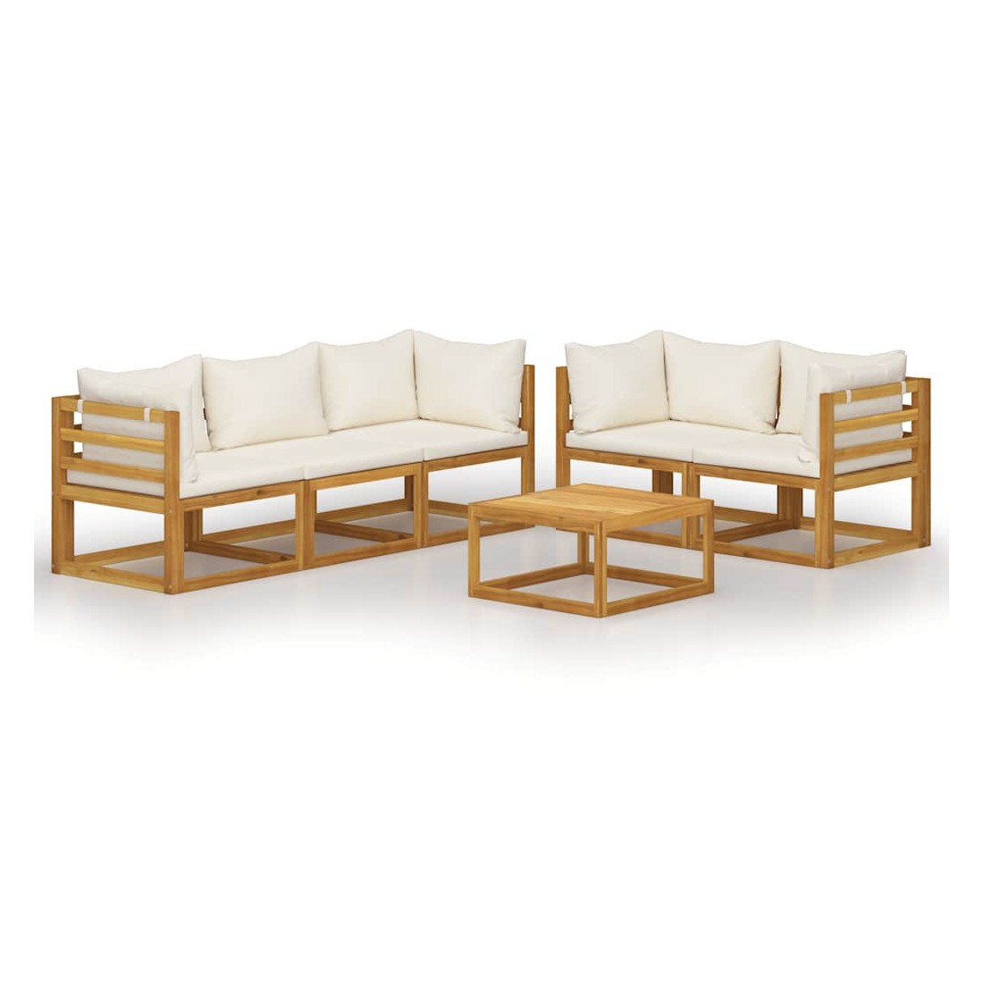 Salon de jardin 6 pcs avec coussin Crème Bois d'acacia solide