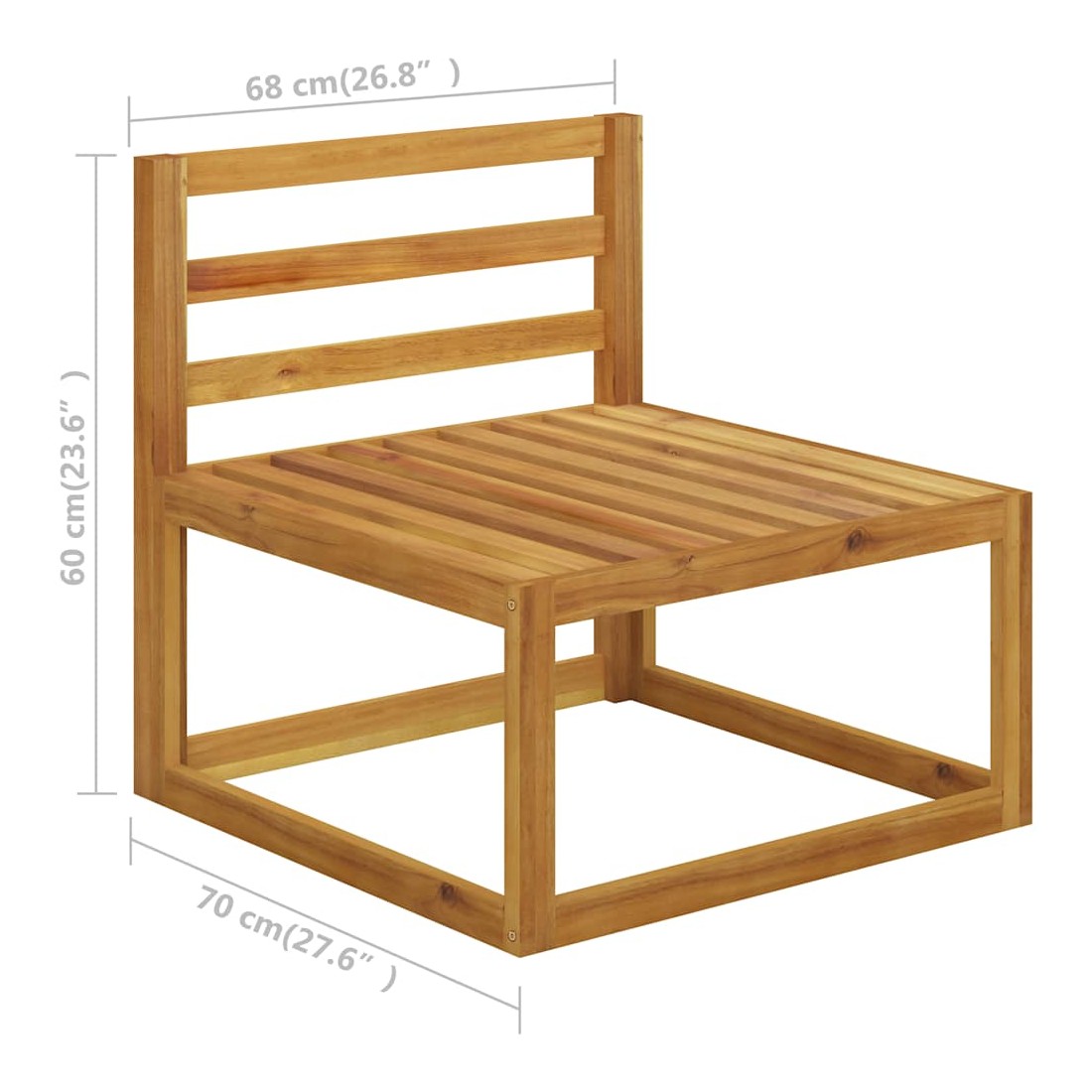 Ce mobilier de jardin en bois est une combinaison parfaite de style et de fonctionnalité. Avec cela dans votre jardin, vous pouvez passer du temps relaxant et apaisant avec votre famille et vos amis. Doté d'un cadre en bois d'acacia massif, l'ensemble de canapé est solide, robuste et durable; et sa finition à l'huile rend l'ensemble de canapé adapté à une utilisation en extérieur. Les coussins d'assise et de dossier amovibles sont épaississement rembourrés, afin d'offrir un grand confort d'assise. Une table basse au design à lattes unique est également incluse. De plus, grâce à sa conception modulaire, toutes les pièces peuvent être arrangées et personnalisées selon vos besoins. Cet ensemble de sièges sera sûrement le point de mire de votre jardin ou patio.