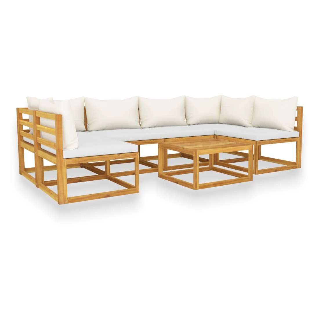 Salon de jardin 7 pcs avec coussin Crème Bois d'acacia solide