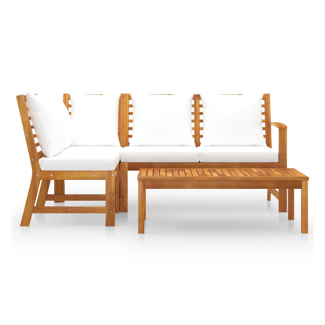 Salon de jardin 4 pcs avec coussin Crème Bois d'acacia solide