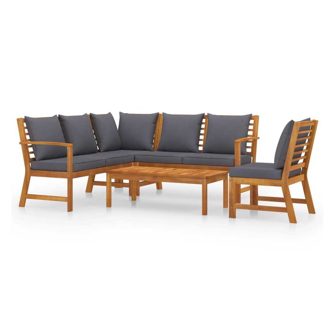 Cet ensemble de salon de jardin de 5 pièces sera un excellent supplément à votre espace de vie extérieur. Il ajoutera une touche d'élégance moderne à votre patio, balcon ou jardin avec son design élégant. Doté d’un cadre en bois d’acacia massif, l’ensemble de canapés est solide, robuste et durable; et sa finition à l'huile rend l’ensemble de canapés adapté à une utilisation à l'extérieur. Une table basse au design unique à lattes est également incluse. Vous pouvez mettre quelques collations, boissons, tasses à thé, livre, etc, sur la table basse et garder tous les essentiels à portée de main. Cet ensemble est livré avec des coussins d’assise et de dossier rembourrés très confortables. Les housses en polyester à faible entretien peuvent également être retirées et lavées. De plus, grâce à sa conception modulaire, toutes les pièces peuvent être disposées et personnalisées selon vos besoins.