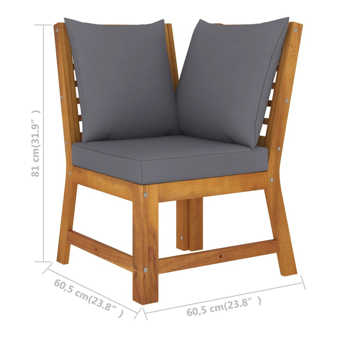 • Dimensions du canapé d’angle : 60,5 x 60,5 x 81 cm (l x P x H)