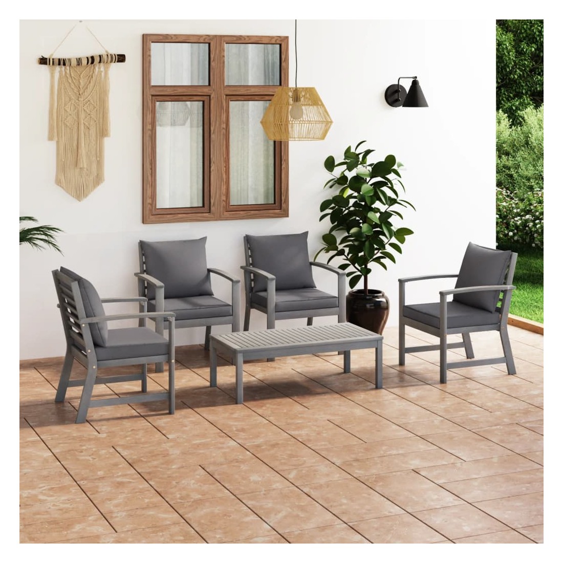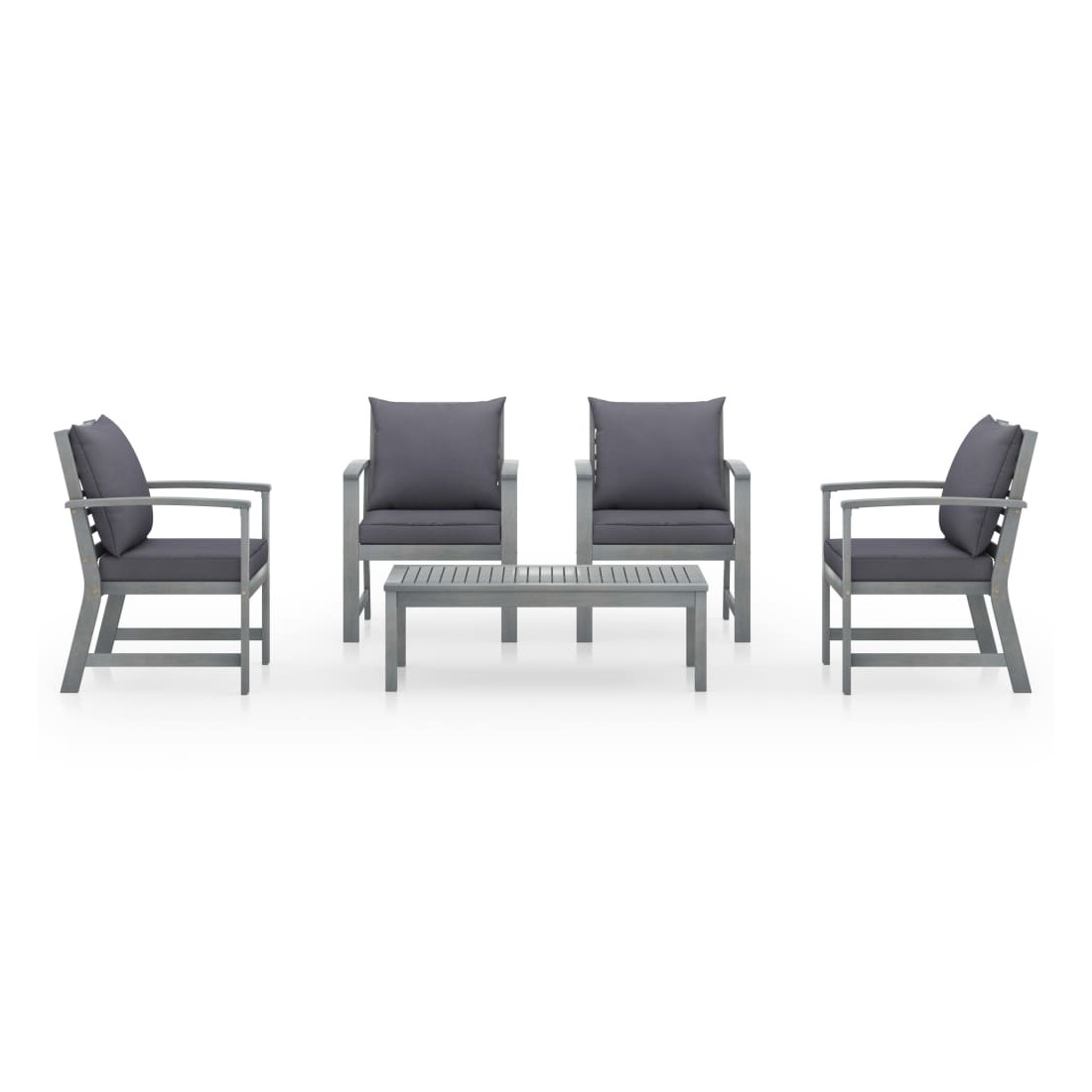 Ce mobilier de jardin en bois est une combinaison parfaite de style et de fonctionnalité. Avec cela dans votre jardin, vous pouvez passer du temps relaxant et apaisant avec votre famille et vos amis. Doté d'un cadre en bois d'acacia massif, l'ensemble de canapé est solide, robuste et durable. Sa finition grise lavable rend l'ensemble de canapé adapté à une utilisation extérieure. Les coussins d'assise et de dossier amovibles sont épaississement rembourrés, afin d'offrir un grand confort d'assise. Une table basse au design à lattes unique est également incluse. Vous pouvez garder vos collations, boissons ou autres essentiels à portée de main. De plus, grâce à sa conception modulaire, toutes les pièces peuvent être arrangées et personnalisées selon vos besoins. Veuillez noter que nous vous recommandons de couvrir l'ensemble pendant la pluie, la neige et le gel.