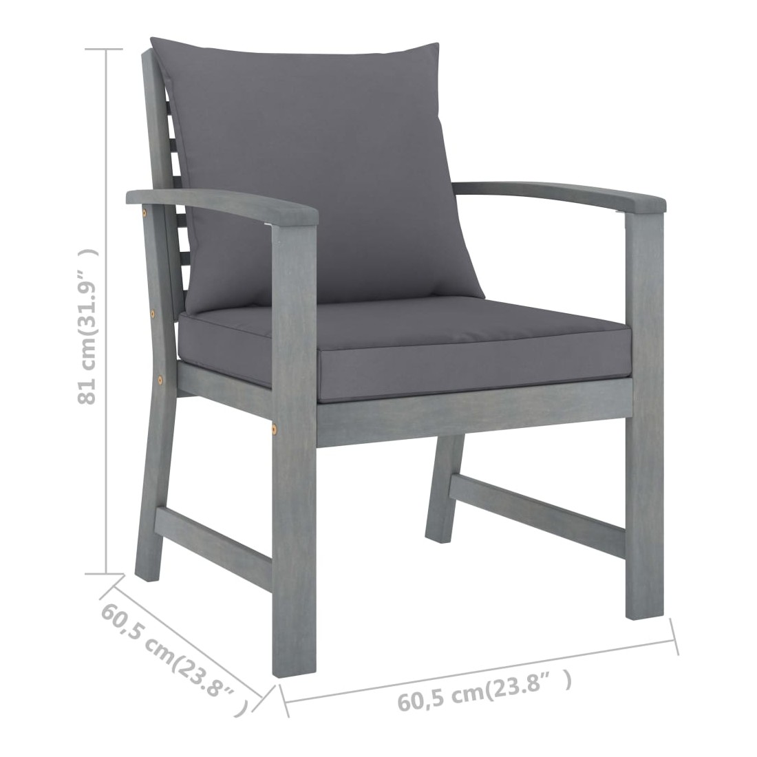 - Dimensions du fauteuil : 60,5 x 60,5 x 81 cm (l x P x H)
