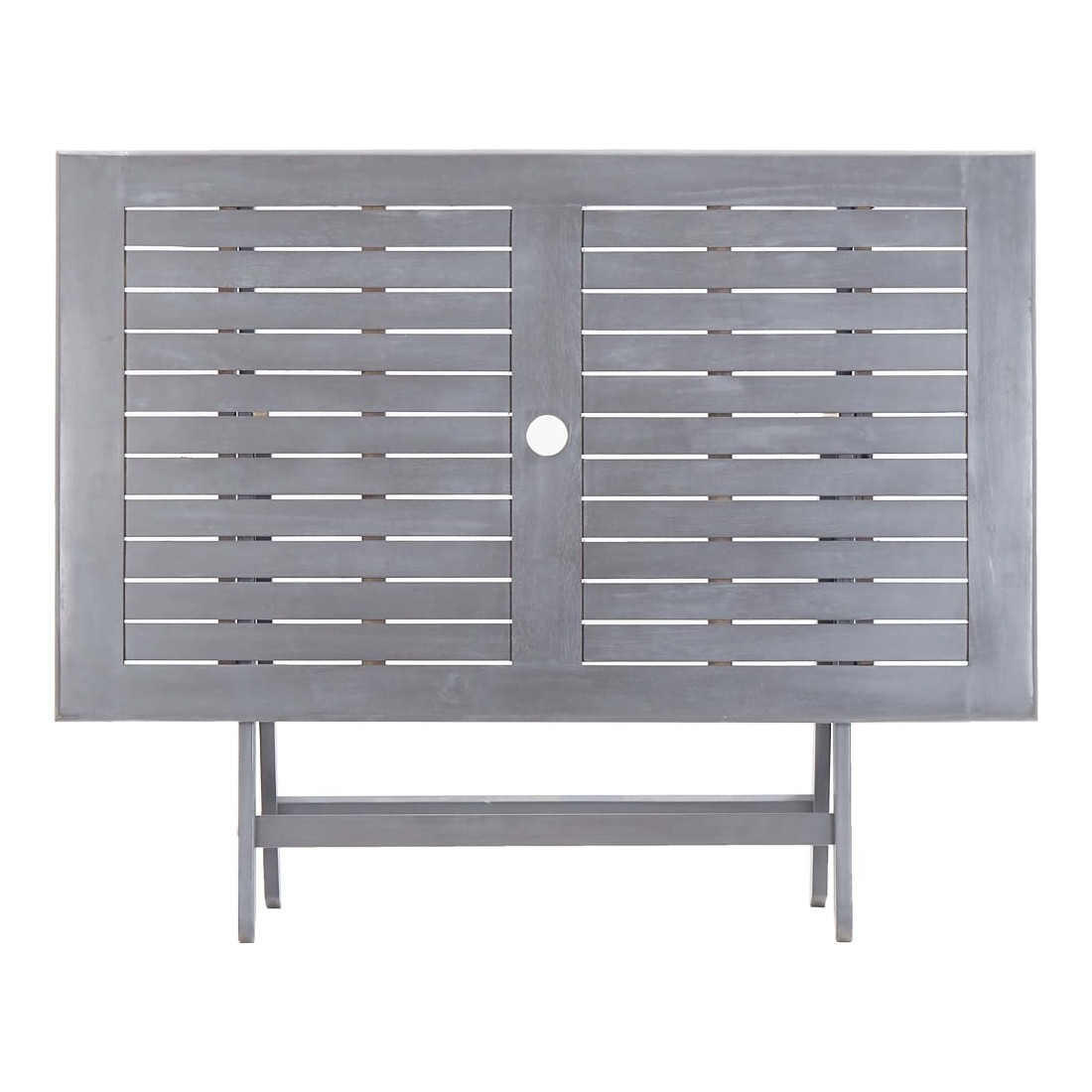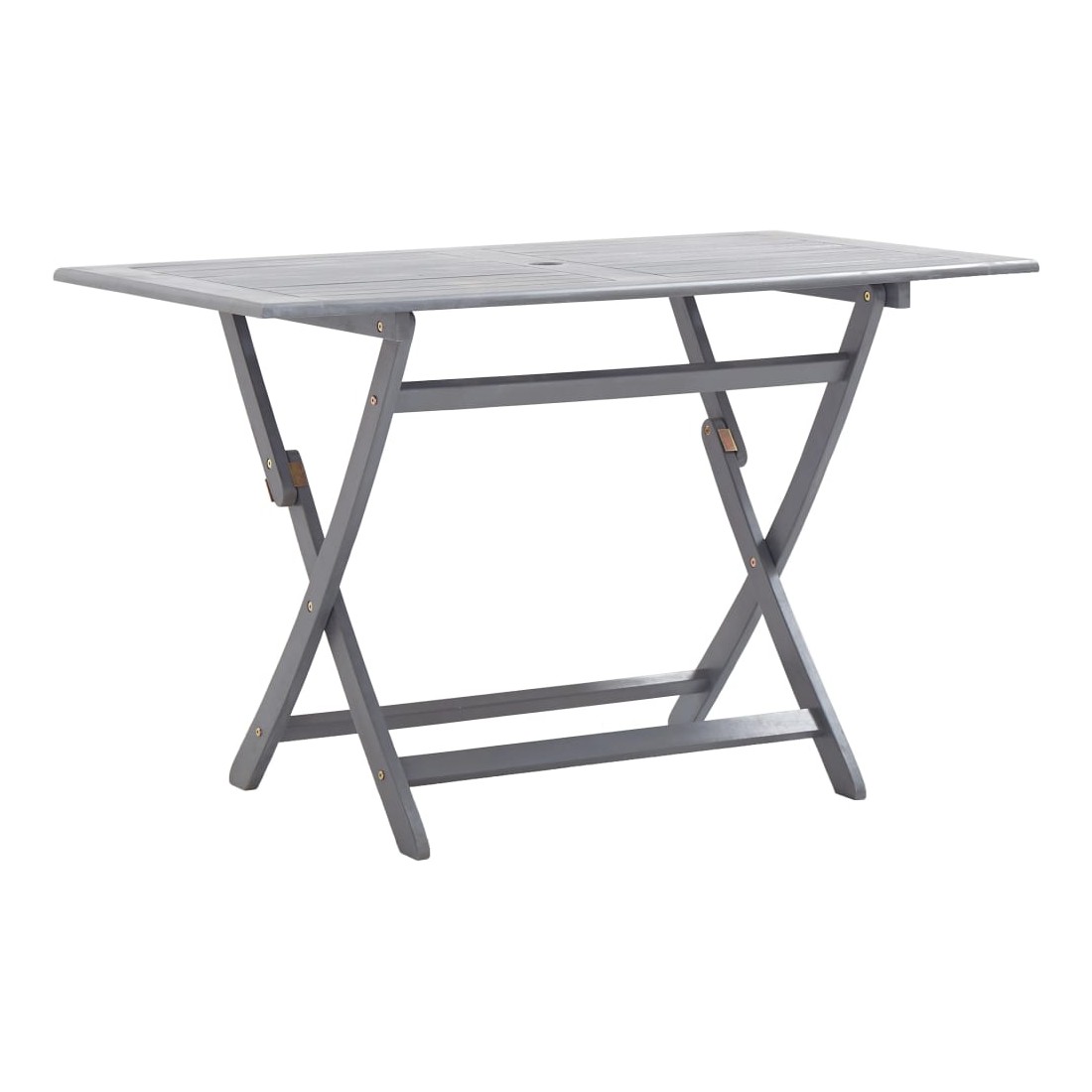 Cet ensemble de salle à manger de jardin en bois, pratique mais élégant, convient parfaitement à une utilisation extérieure et constitue un point de mire attrayant pour votre jardin, terrasse ou patio. La table et les chaises sont en bois d'acacia massif avec une finition de lavage gris. Par conséquent, elles sont résistantes aux intempéries, durables et faciles à nettoyer avec un chiffon humide. En raison de la structure en bois robuste, l'ensemble est très stable. Il vous procurera confort et grande commodité pour passer du temps avec votre famille et vos amis. De plus, la table et les chaises peuvent être facilement repliées pour un rangement et un transport faciles lorsqu'elles ne sont pas utilisées.