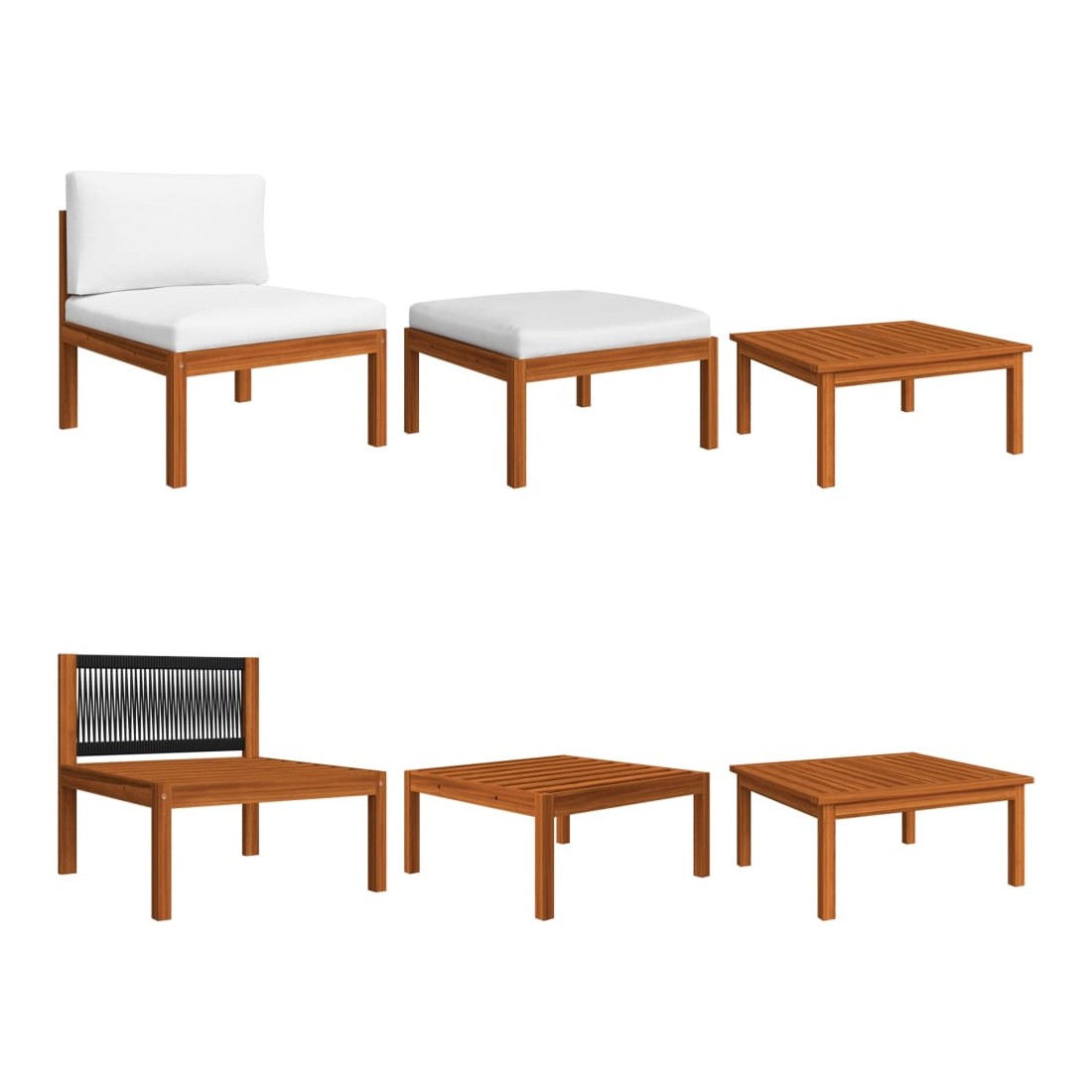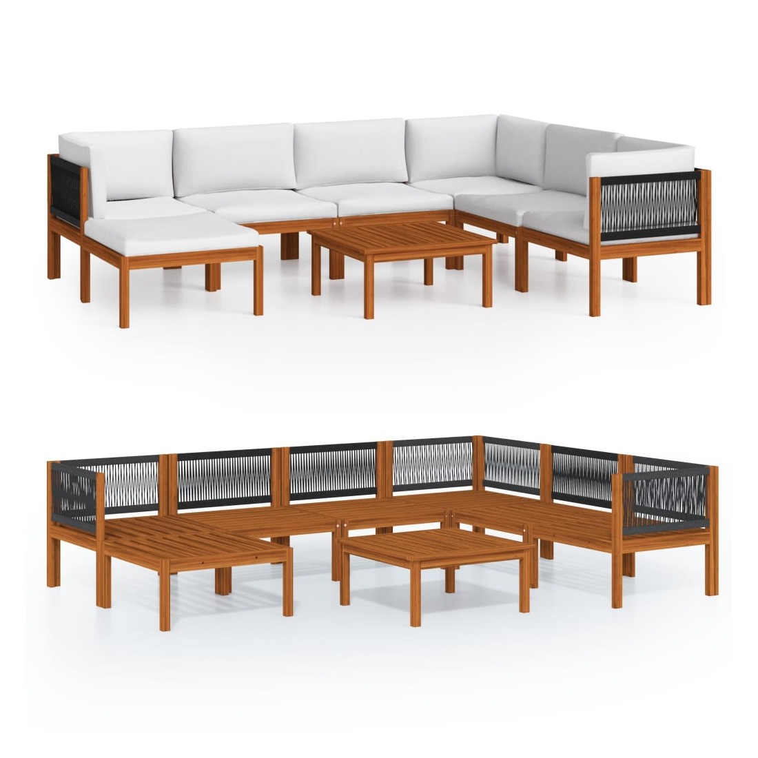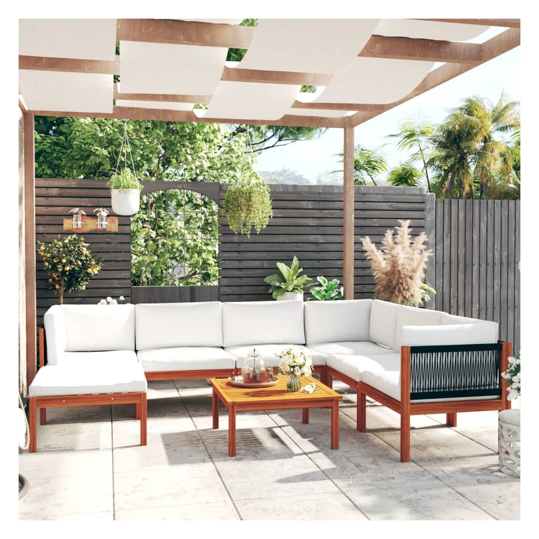 Salon de jardin 8 pièces avec coussins, bois d'acacia crème et corde