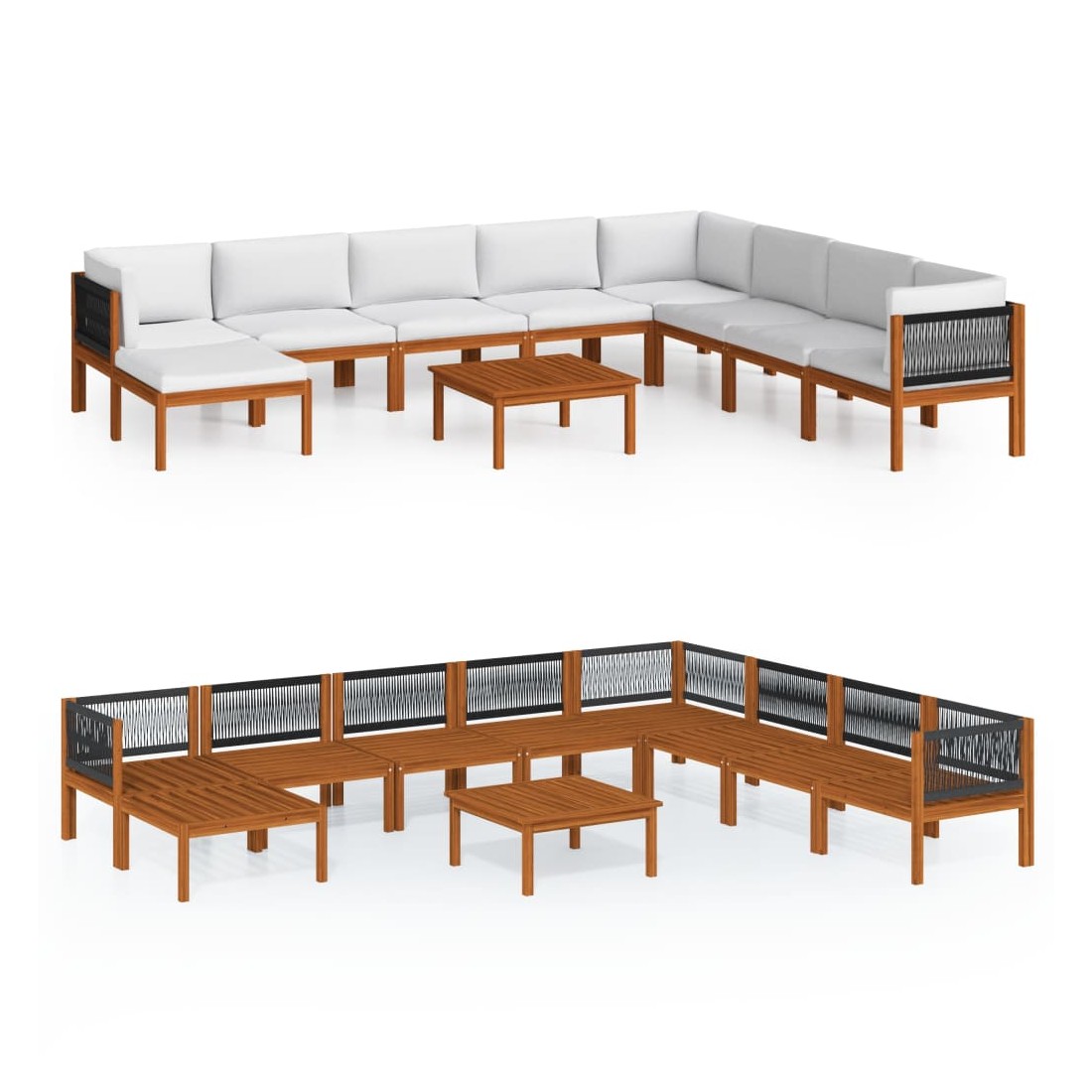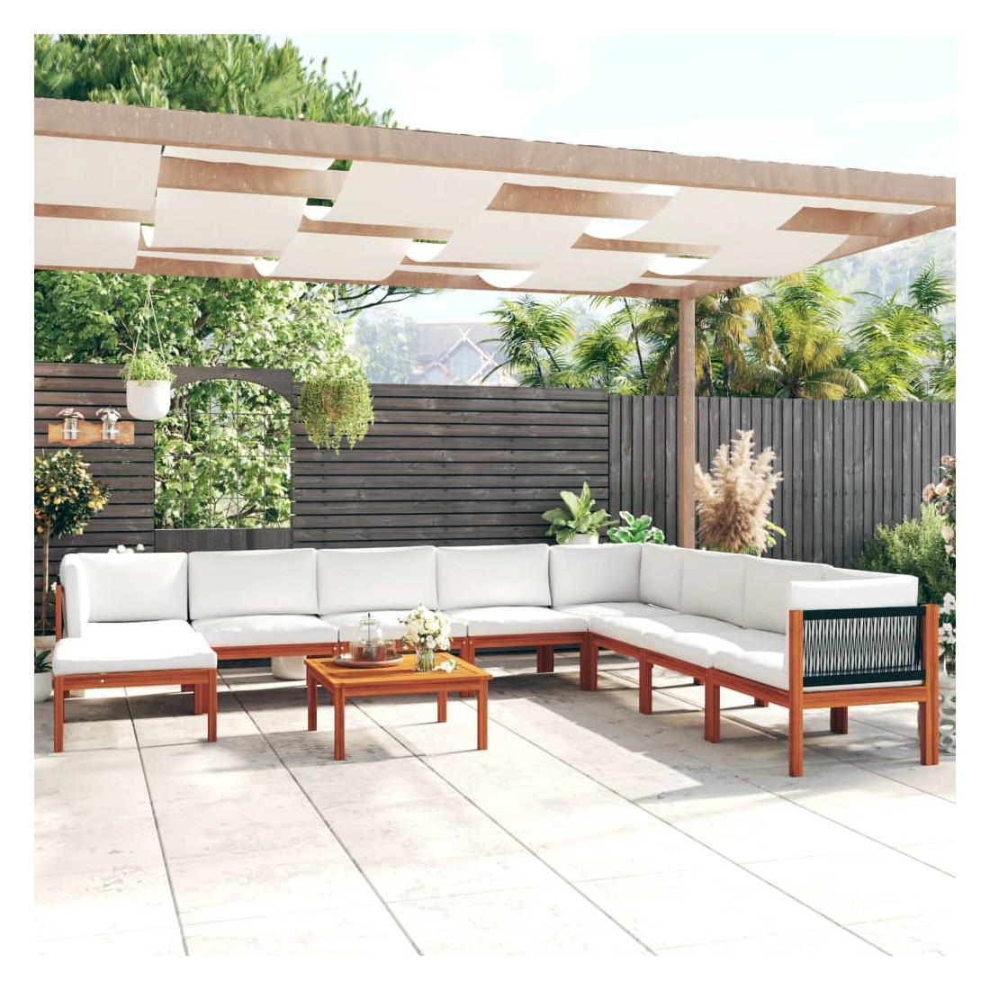 Ce salon de jardin avec dossiers en corde tressée sera idéal pour vous détendre et profiter du beau temps, faire une sieste ou discuter en famille ou entre amis. Avec son design intemporel, ce salon en bois apportera une touche de charme rustique à votre terrasse, jardin ou salon. Ce canapé de jardin est doté de dossiers en corde finement travaillés, ajoutant une touche sophistiquée à tout espace extérieur. Cet ensemble de jardin est fabriqué en bois d'acacia massif de haute qualité, un bois dur tropical résistant aux intempéries et très durable. Grâce à sa finition à l'huile, ce salon de jardin arbore une couleur chaleureuse et est facile à nettoyer et à entretenir. De plus, la livraison comprend des coussins d'assise et de dossier épais pour un confort optimal.