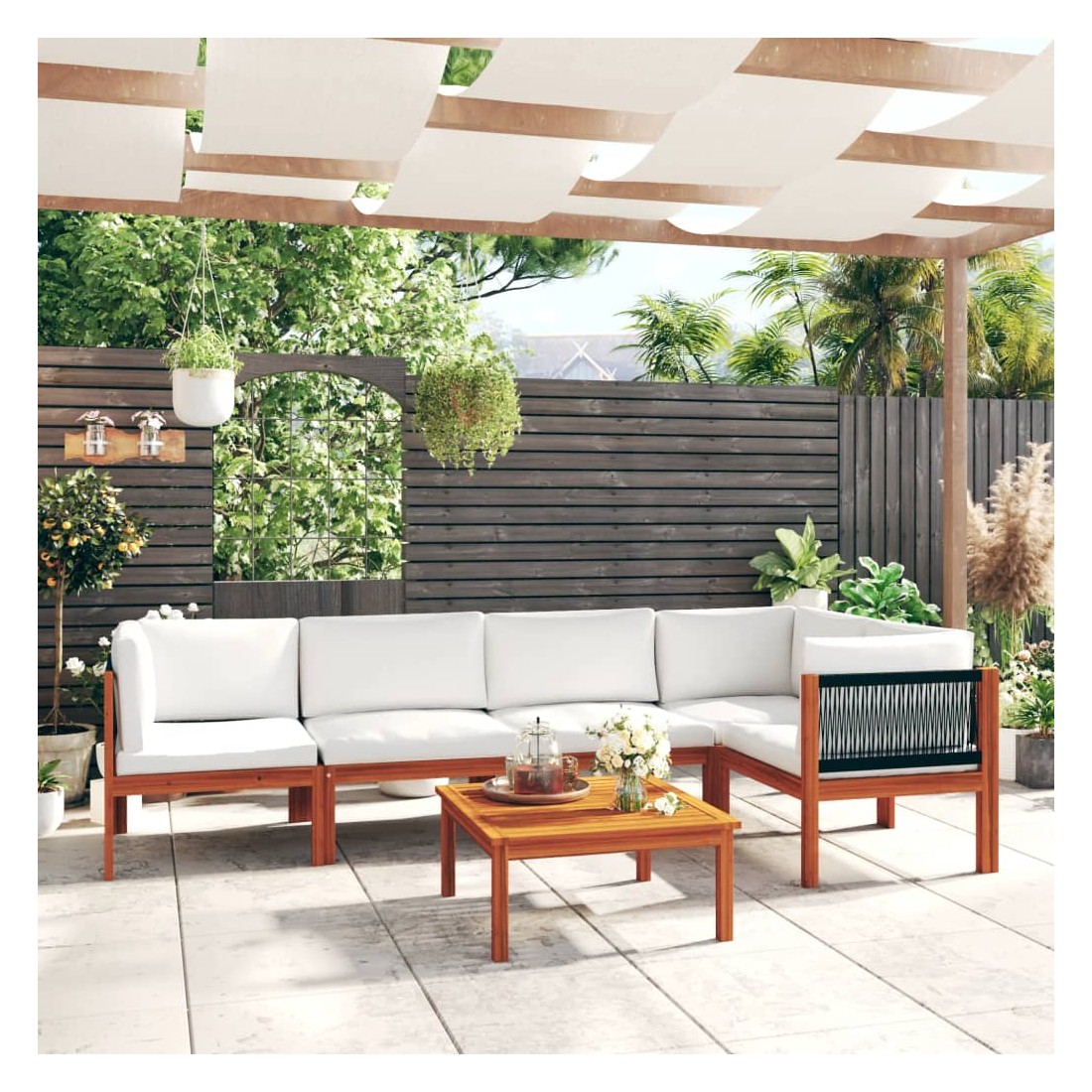 Ce salon de jardin avec dossiers en corde tressée sera idéal pour vous détendre et profiter du beau temps, faire une sieste ou discuter en famille ou entre amis. Avec son design intemporel, ce salon en bois apportera une touche de charme rustique à votre terrasse, jardin ou salon. Ce canapé de jardin est doté de dossiers en corde finement travaillés, ajoutant une touche sophistiquée à tout espace extérieur. Cet ensemble de jardin est fabriqué en bois d'acacia massif, un bois dur tropical résistant aux intempéries et très durable. Grâce à sa finition huilée, ce salon de jardin arbore une couleur chaleureuse et est facile à nettoyer et à entretenir. De plus, la livraison comprend des coussins d'assise et de dossier épais pour un confort optimal.
