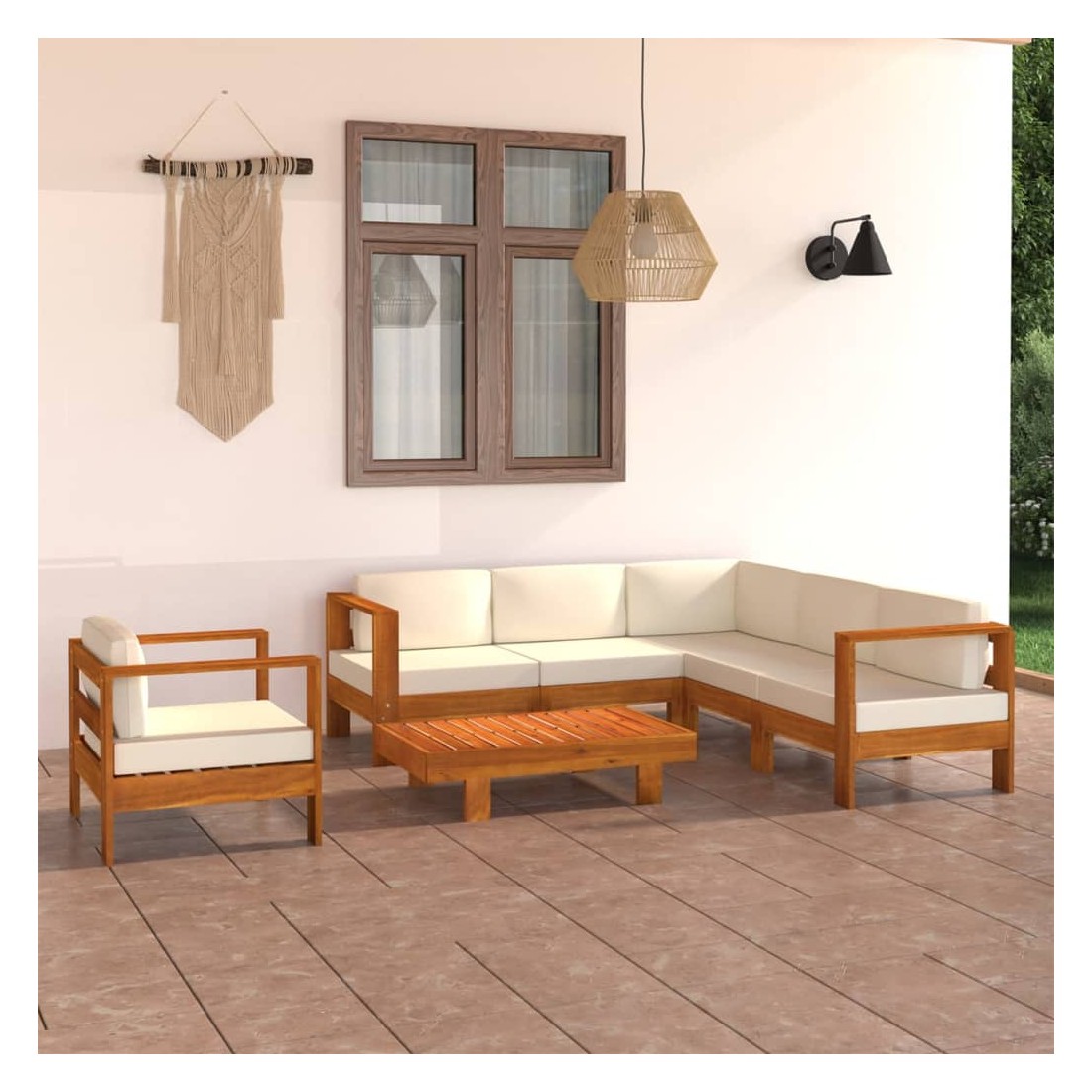 Salon de jardin 7 pièces avec coussins 100 x 60 cm Bois d'acacia