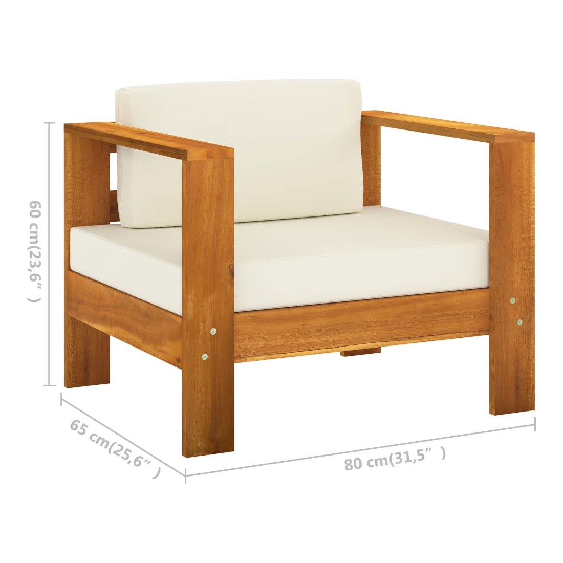 Décorez votre cour, transformez-la en un endroit accueillant pour vous asseoir et apprécier votre environnement ! Le salon de jardin en bois est un choix idéal pour vous détendre et vivre du bon temps avec vos amis ou votre famille dans le jardin, sur le patio ou le balcon. Le salon d'extérieur est soigneusement fabriqué en bois d'acacia massif, ce qui le rend robuste, durable et adapté à une utilisation en plein air. Les coussins de siège et les coussins de dossier bien rembourrés offrent un confort supplémentaire pendant votre temps de détente. La surface à finition à l'huile est facile à nettoyer avec un chiffon humide. De plus, le dessus de table robuste est idéal pour placer les boissons et les aliments à portée de main. Remarque : afin de prolonger la durée de vie des meubles d'extérieur, nous vous recommandons de les protéger avec une housse imperméable.