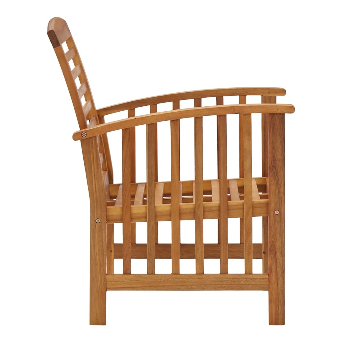 L'ensemble de salon de jardin en bois ajoute un look vintage et est spécialement conçu pour votre jardin, patio ou autre espace de vie extérieur ! L’ensemble de meubles d’extérieur est construit en bois d'acacia massif avec une finition à l’huile, ce qui le rend stable et durable. Grâce au dessus de table en bois massif au design à lattes, la table basse vous offre de l’espace pour mettre vos collations, paniers de fruits, objets décoratifs, ainsi que d’autres essentiels. Le dossier légèrement incurvé et les accoudoirs ajoutent au confort d'assise du banc et de la chaise. Remarque importante : les couleurs et les grains varient d'une pièce à l'autre, ce qui rend chaque pièce unique. La livraison est également aléatoire.