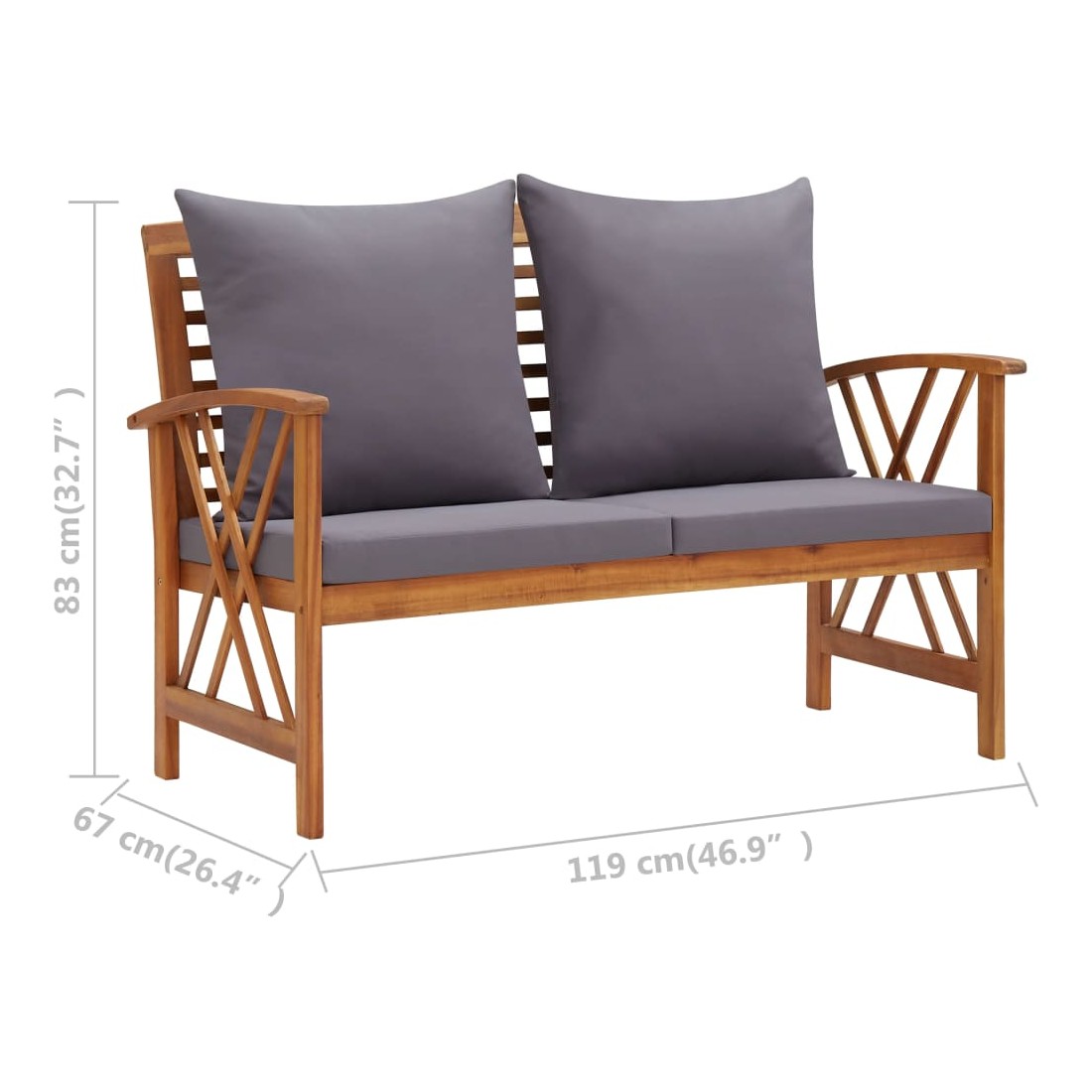 - Dimensions du banc : 119 x 67 x 83 cm (L x l x H)