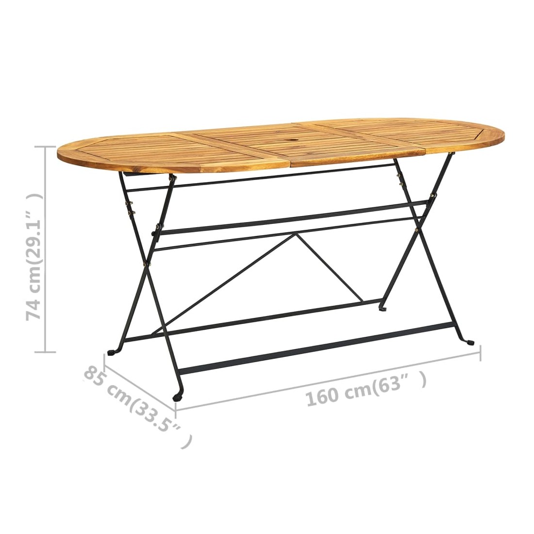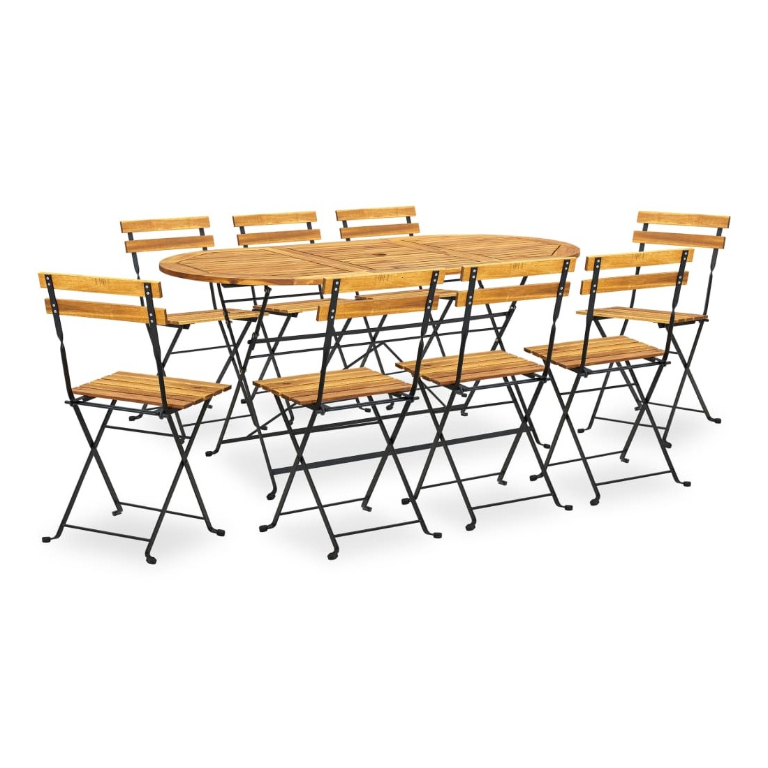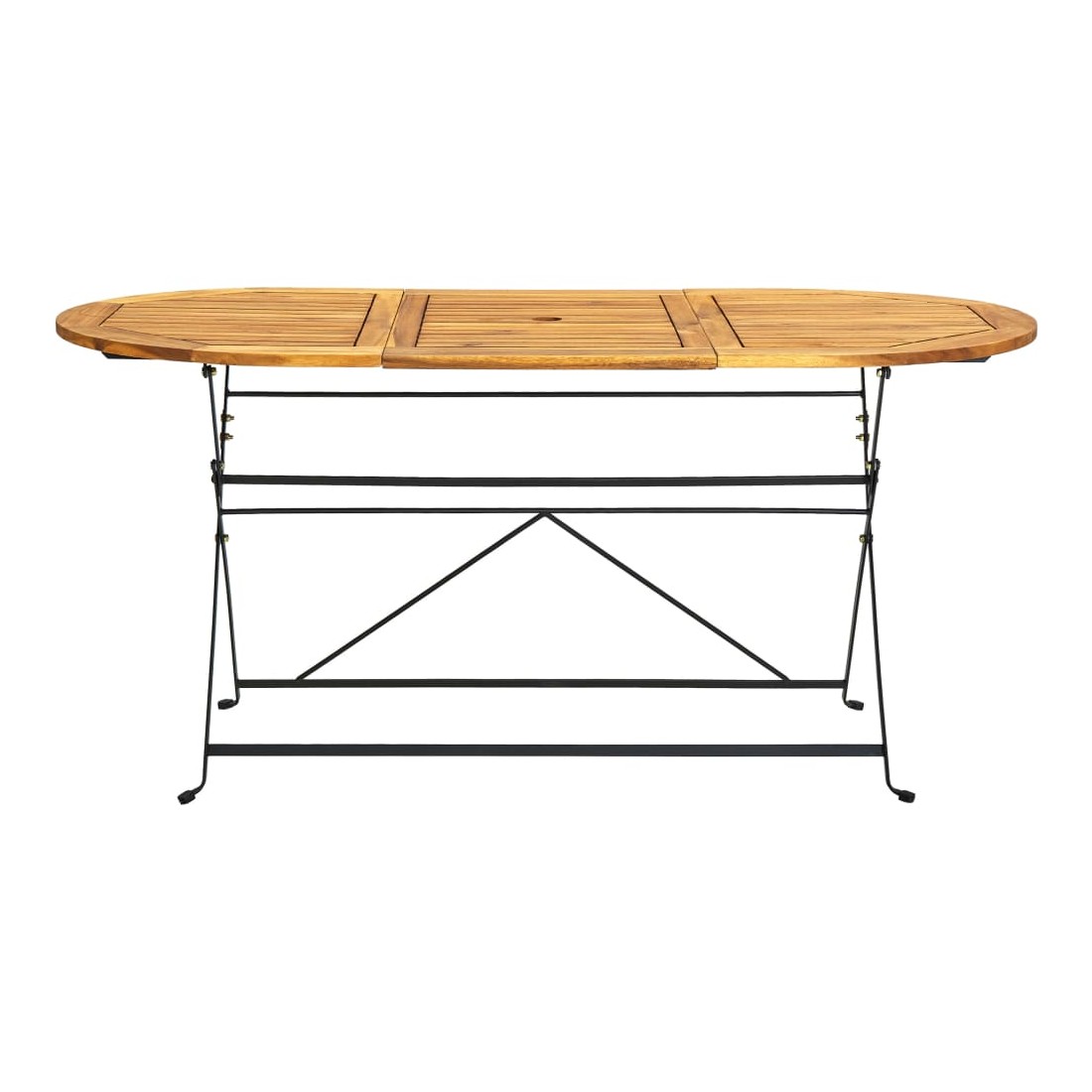 Cet élégant ensemble de salle à manger en bois en plein air ajoute de l’espace et une touche de charme rustique à votre jardin, terrasse ou patio ! Cet ensemble de salle à manger de jardin est fait de bois d'acacia massif, un bois dur tropical, résistant aux intempéries et très durable. L'acier robuste donne également une stabilité supplémentaire. La table et les chaises sont faciles à nettoyer avec un chiffon humide et peuvent être pliées pour économiser de l'espace lorsqu'elles ne sont pas utilisées. Remarque : afin de prolonger la durée de vie des meubles d'extérieur, nous vous recommandons de les protéger avec une housse imperméable.