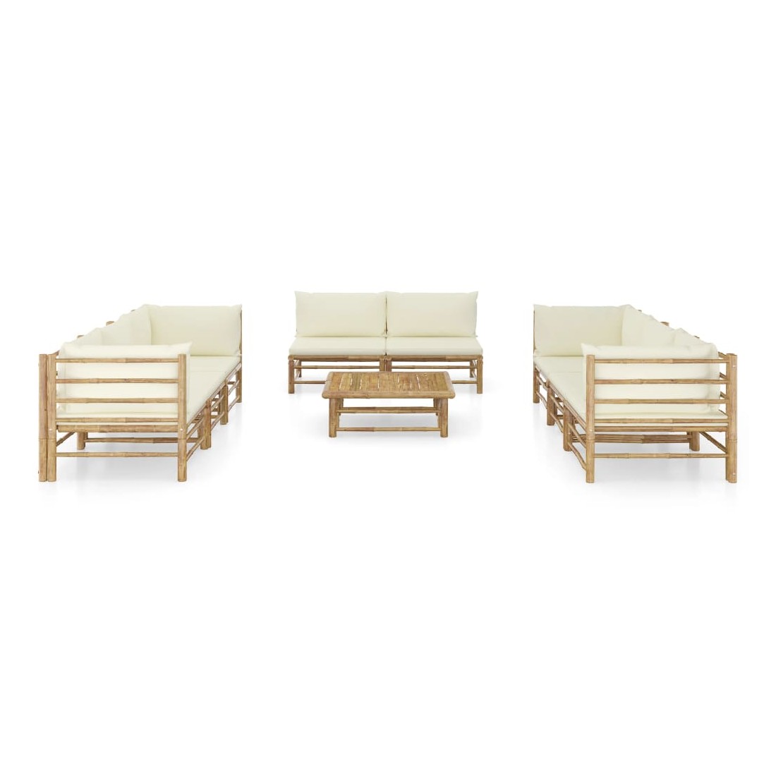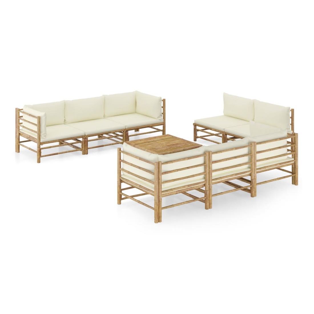 Salon de jardin 9 pcs avec coussins blanc crème bambou
