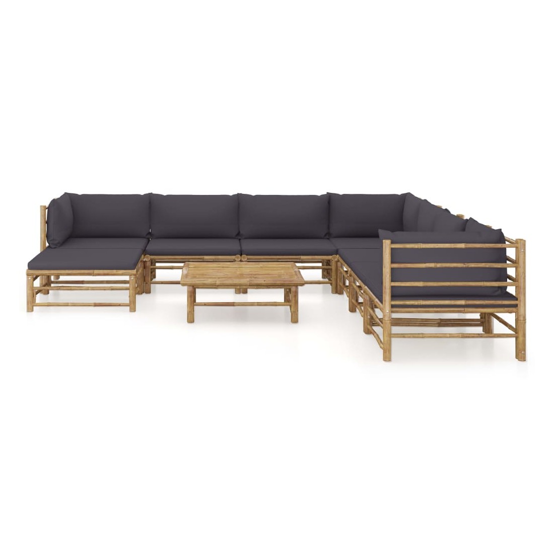 Salon de jardin 9 pcs avec coussins gris foncé bambou