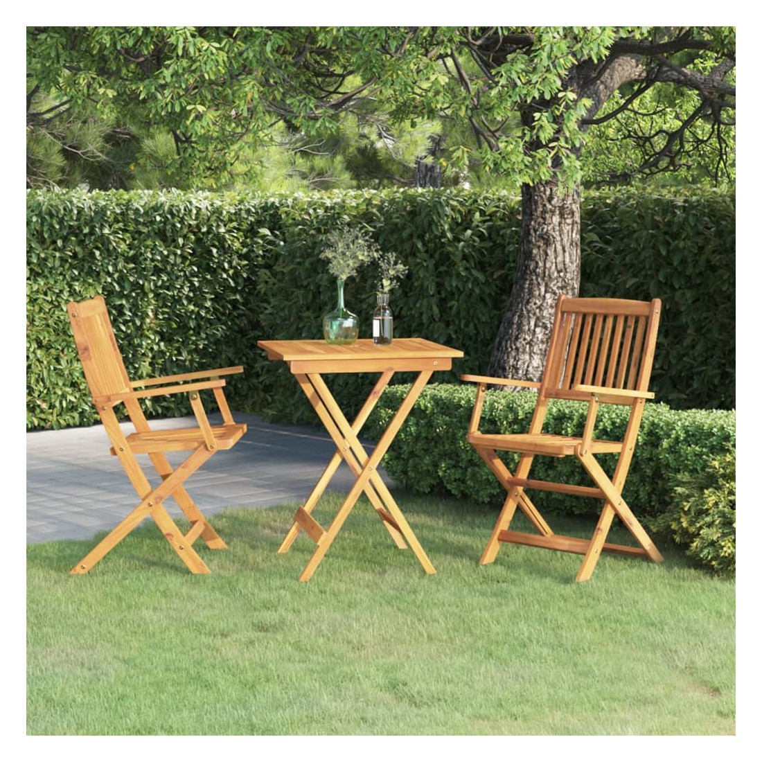 Asseyez-vous pour un dîner en plein air ou tout autre repas avec cet ensemble de salle à manger de jardin pliable en bois. Cet ensemble de salle à manger est en bois d'acacia massif, ce qui le rend robuste et stable. La surface à finition à l'huile est facile à nettoyer avec un chiffon humide. La table et les chaises peuvent être pliées pour économiser de l’espace lorsqu'elles ne sont pas utilisées.