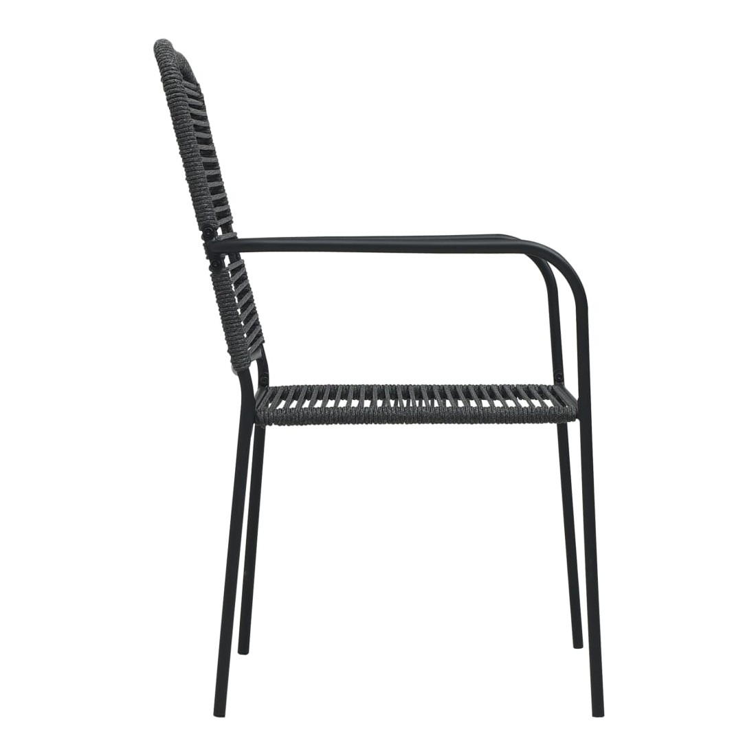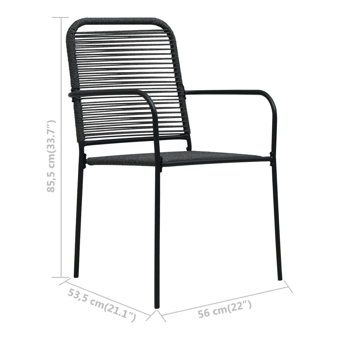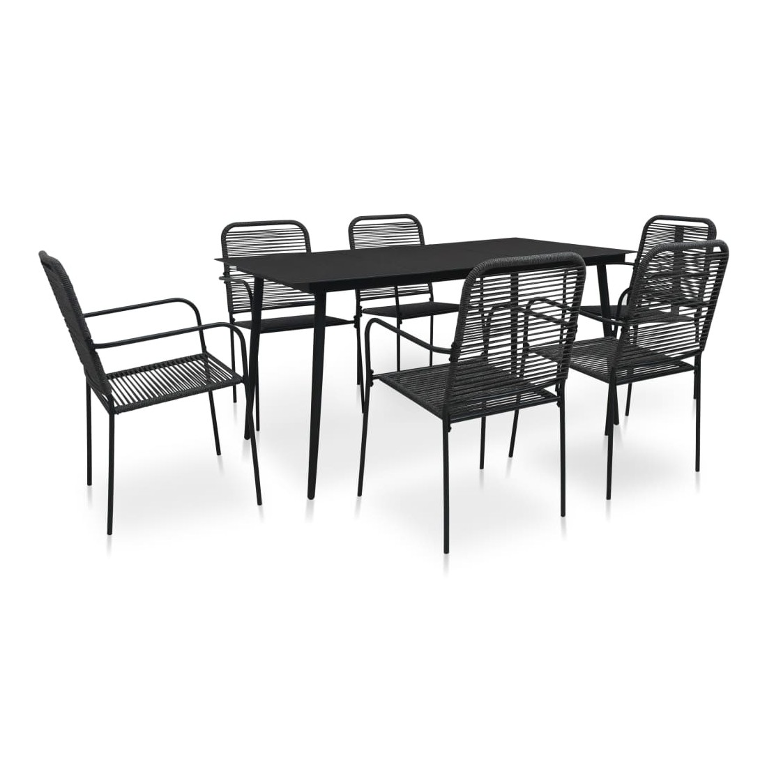 Ensemble à manger de jardin 7 pcs Corde en coton et acier Noir