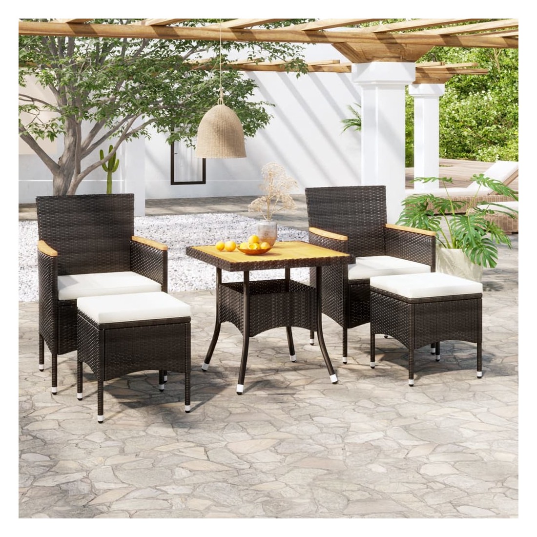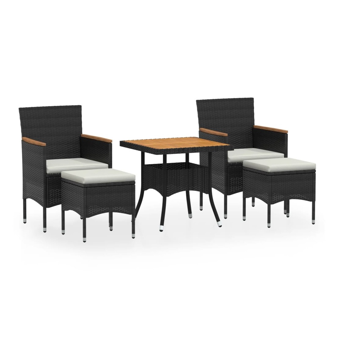 Ensemble à manger de jardin 5 pcs Résine tressée et acacia Noir