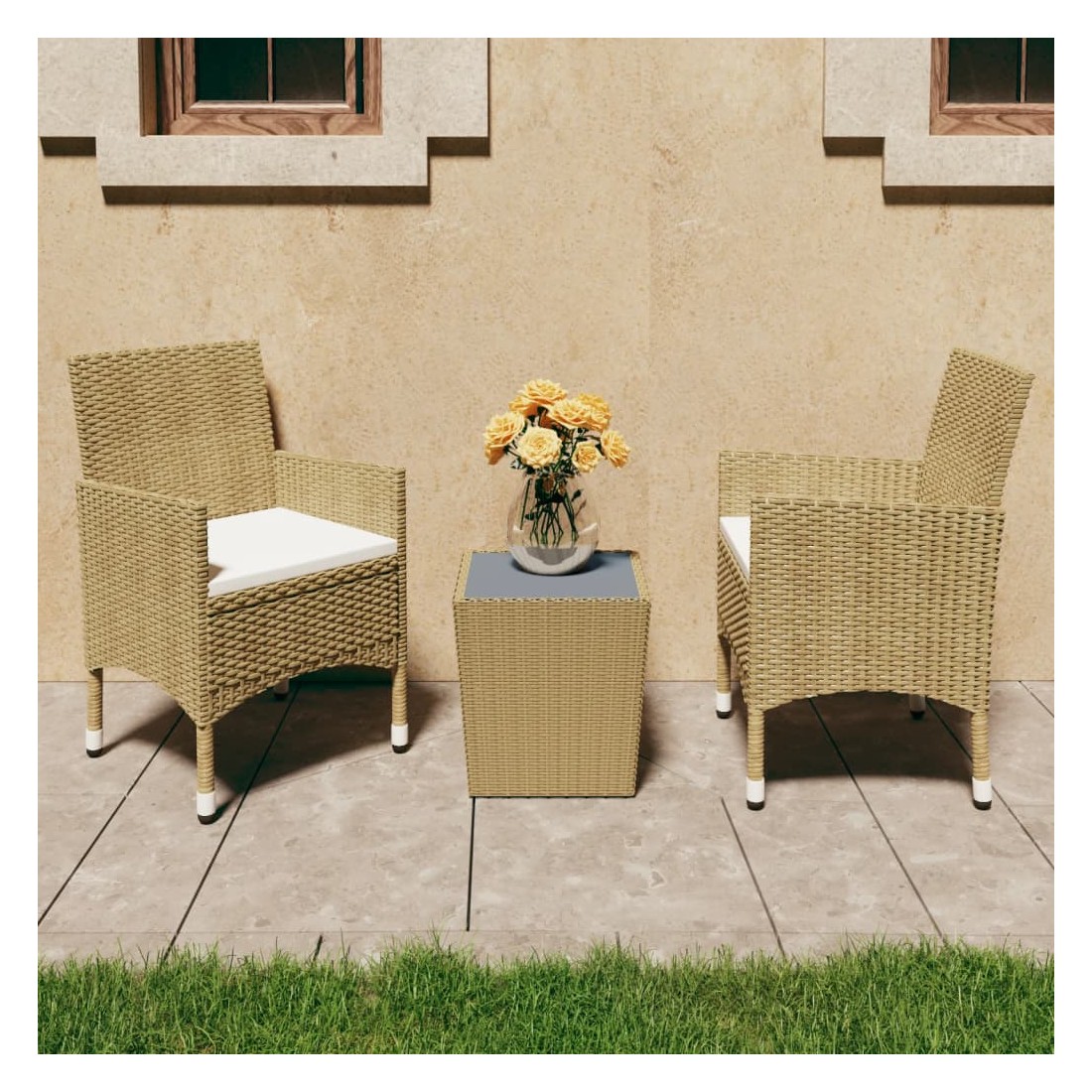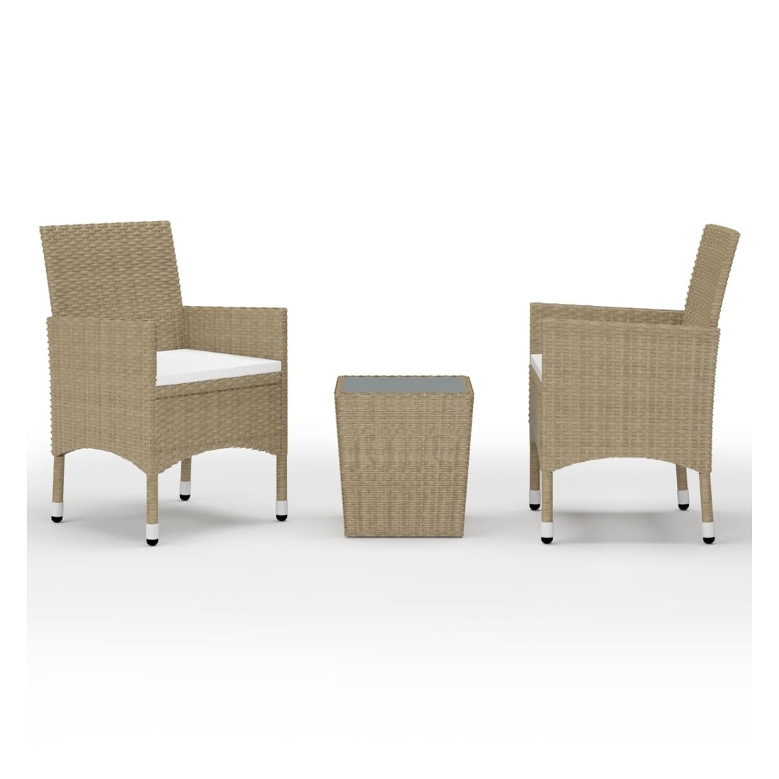 Égayez votre cour arrière avec notre ensemble de bistro de 3 pièces et rendez l'extérieur de votre maison tout aussi accueillant que l'intérieur ! Il est idéal pour le petit balcon, la terrasse, la cour arrière, la véranda et tout autre espace extérieur ! Dotées d'un cadre en acier enduit de poudre recouvert de résine tressée résistante aux intempéries avec protection UV, la table et les chaises garantissent des années d'utilisation en plein air. Les chaises sont conçues dans une forme plus ergonomique pour un confort maximum. Des coussins sont inclus pour plus de soutien. Le dessus de table est en verre trempé renforcé avec support fort, facile à nettoyer et à entretenir.