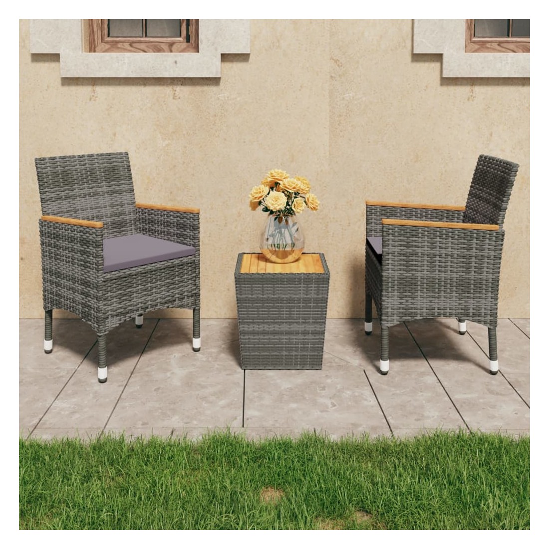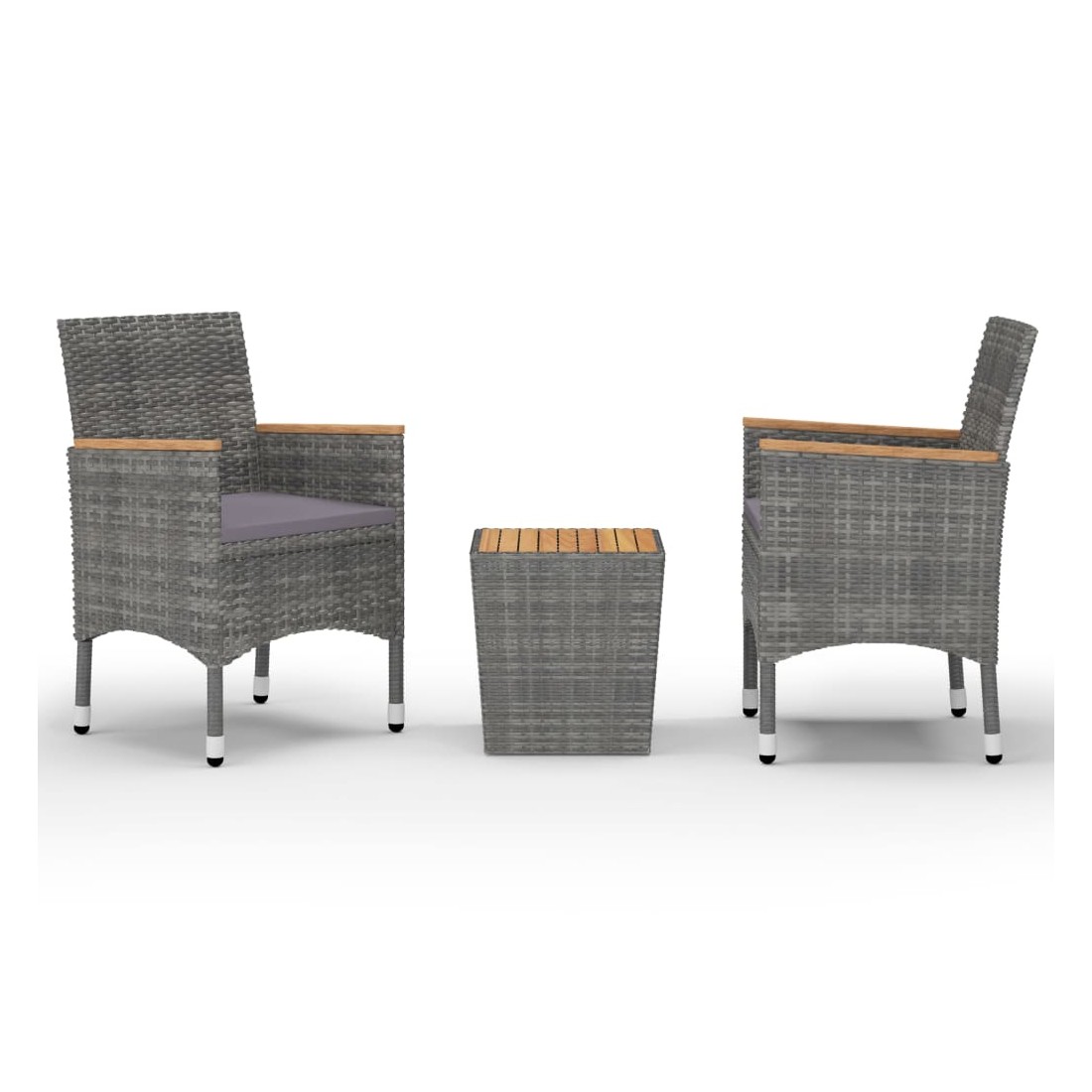 Égayez votre cour arrière avec cet ensemble de bistro de 3 pièces et rendez l'extérieur de votre maison tout aussi accueillant que l'intérieur ! Il est idéal pour le petit balcon, la terrasse, la cour arrière, la véranda et tout autre espace extérieur ! Dotées d'un cadre en acier enduit de poudre recouvert de résine tressée résistante aux intempéries avec protection UV, la table et les chaises garantissent des années d'utilisation à l'extérieur. Les chaises sont conçues dans une forme plus ergonomique pour un confort maximum. Des coussins sont inclus pour plus de soutien. Le dessus de table et les accoudoirs sont en bois d'acacia massif avec une finition à l'huile, qui résiste aux intempéries et est durable. Le savoir-faire et les belles veines du bois font que chaque meuble soit légèrement différent l'un de l'autre.