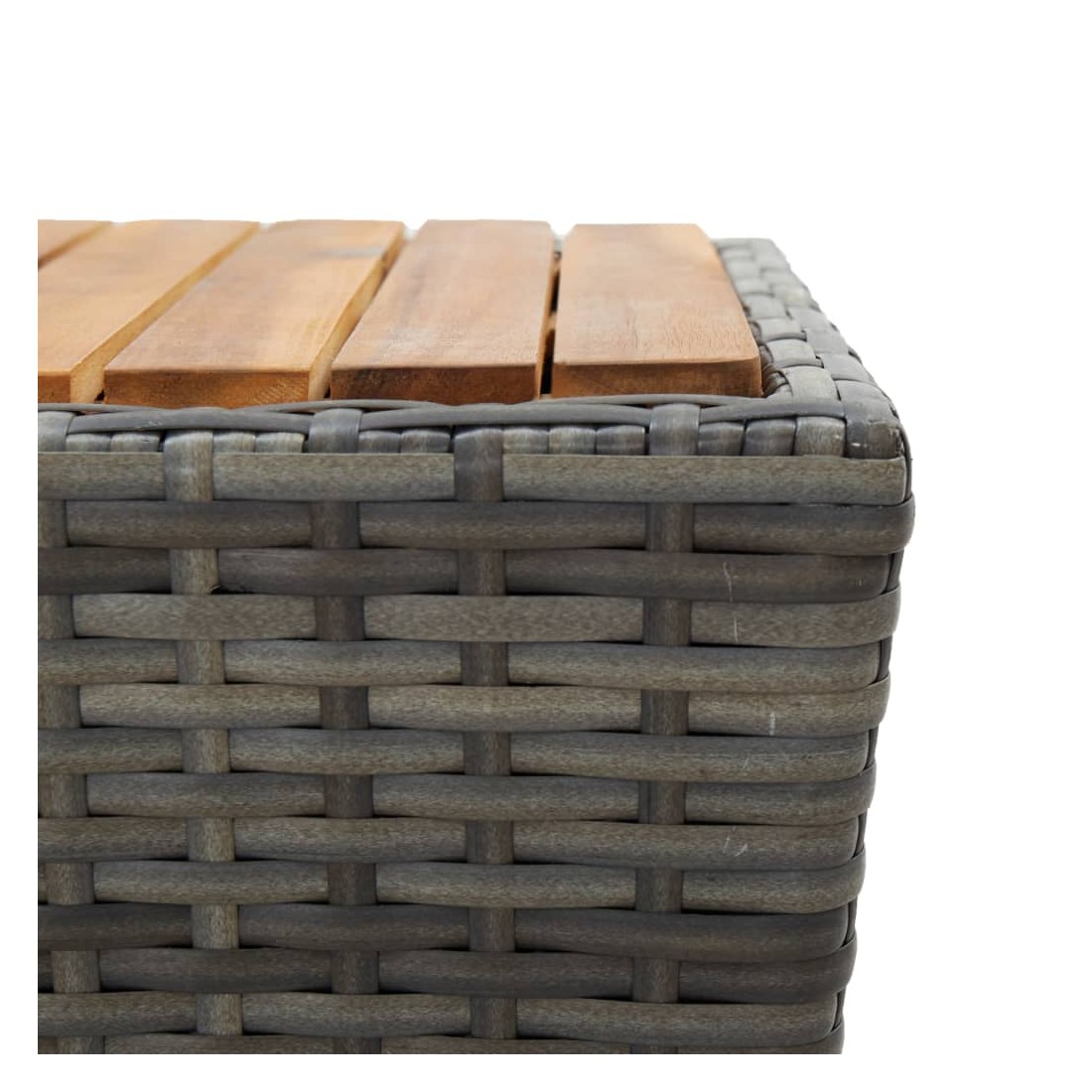 - Matériau : résine tressée, acier, tissu (100 % polyester), bois d'acacia massif avec une finition à l'huile