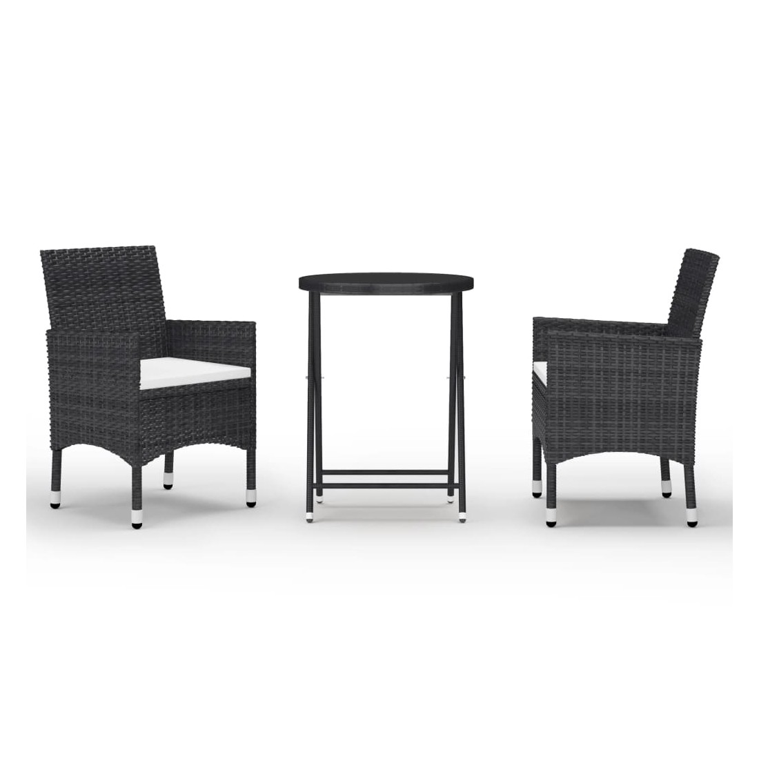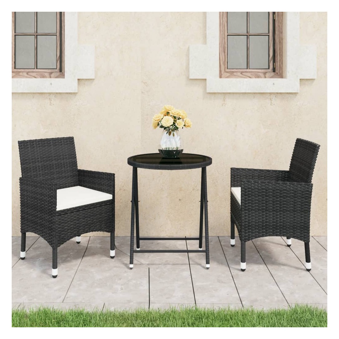 vidaXLUn jardin monotone ? Égayez-le avec notre ensemble de bistro de jardin de 3 pièces et rendez l'extérieur de votre maison tout aussi accueillant que l'intérieur ! Il est idéal pour le petit balcon, la terrasse, la cour arrière, la véranda et tout autre espace extérieur. Dotées d'un cadre en acier enduit de poudre recouvert de résine tressée résistante aux intempéries avec protection UV, la table et les chaises sont durables et stables. Les chaises sont conçues dans une forme plus ergonomique pour un confort maximum. Des coussins sont inclus pour plus de soutien. Le dessus de table est fabriqué en verre trempé renforcé avec support fort, facile à nettoyer et à entretenir. Lorsqu'elle n'est pas utilisée, la table d'extérieur peut être facilement repliée pour économiser de l'espace.