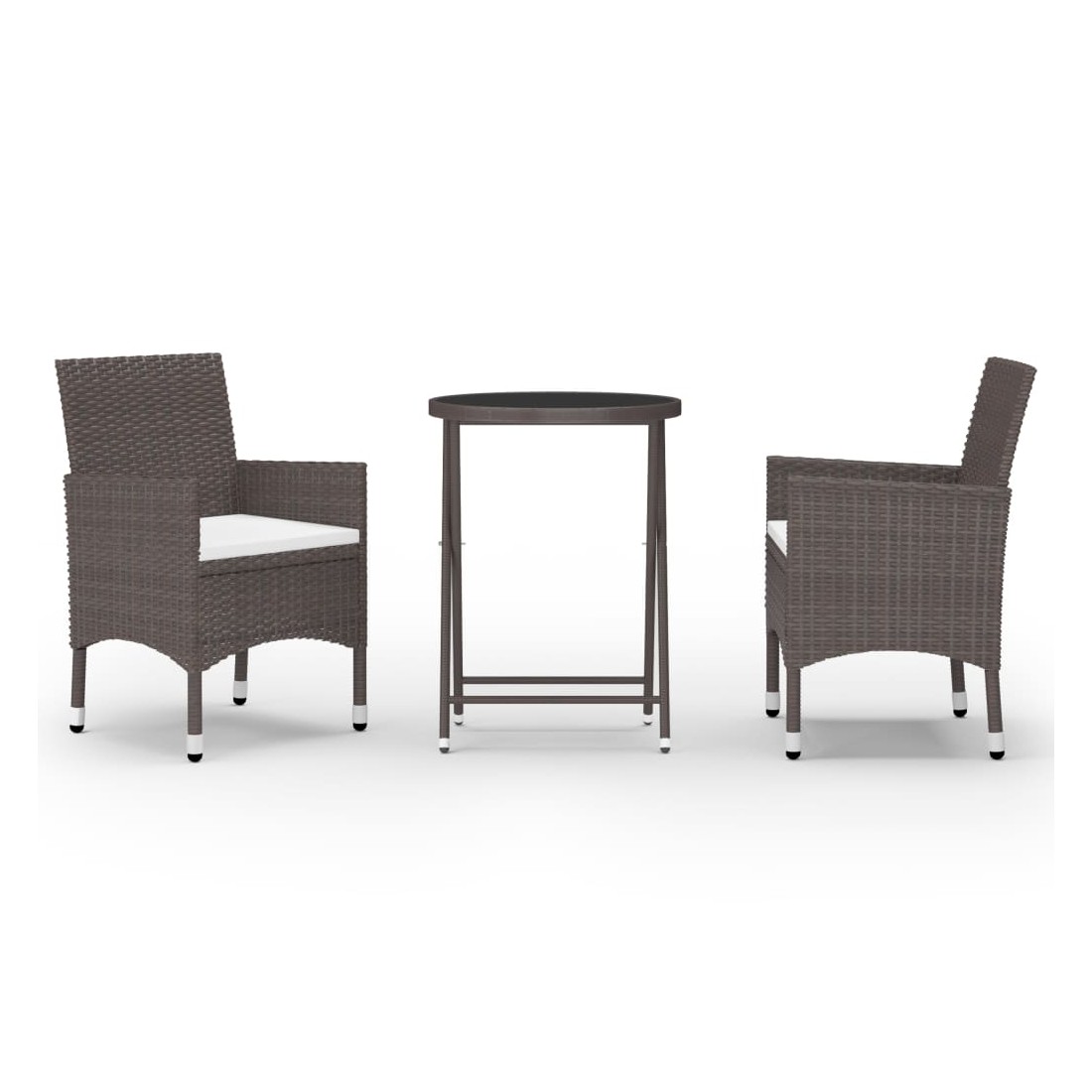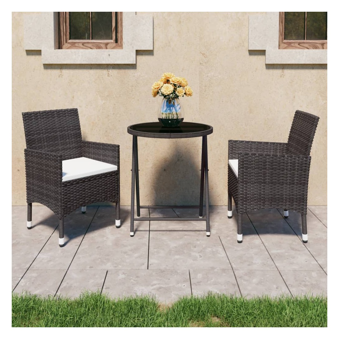Ensemble de bistro de jardin 3 pcs poly rotin et verre trempé