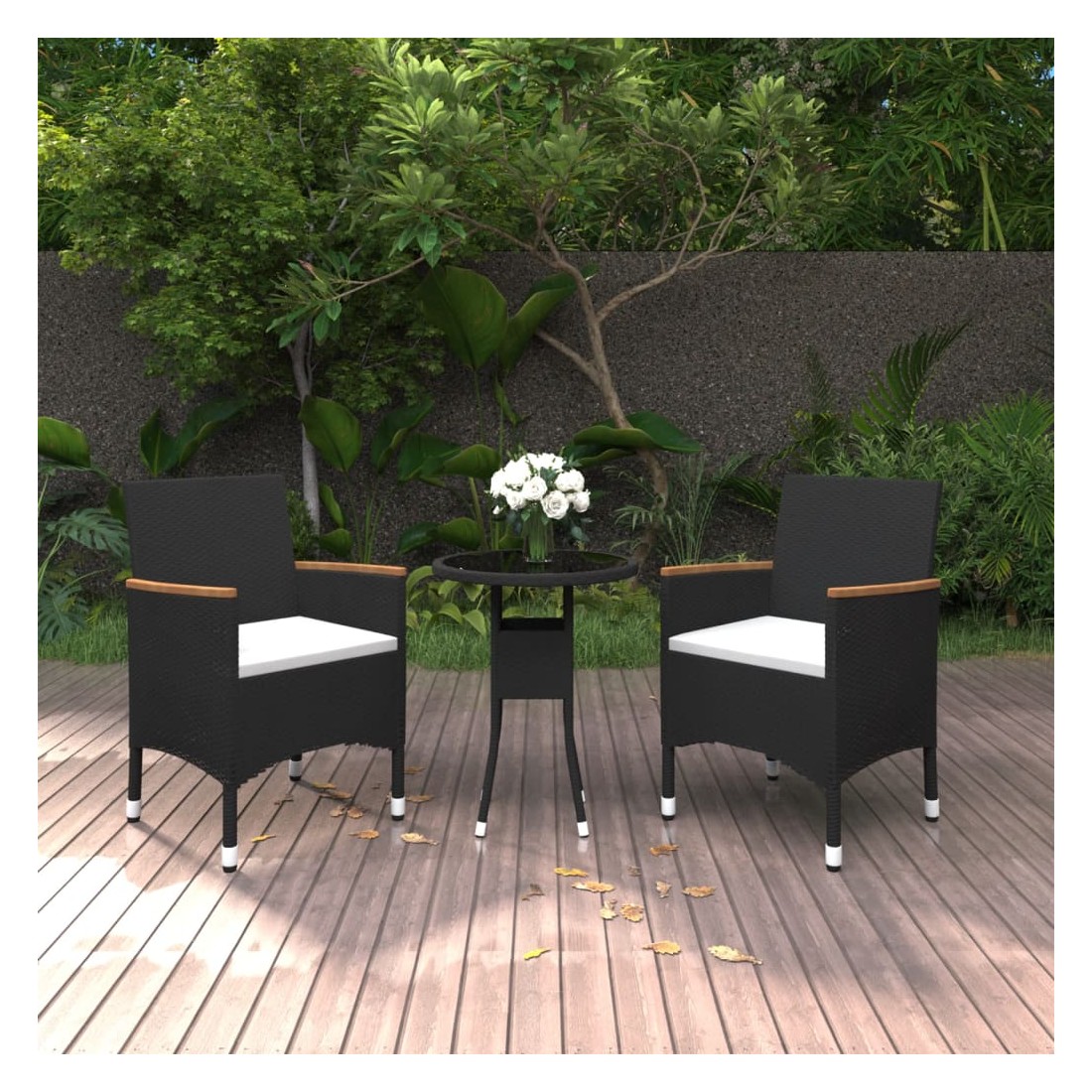 Cet ensemble de salle à manger de jardin, au design élégant, est un excellent choix pour vos repas ou vos moments de détente sur votre patio ou dans votre jardin. Cadre solide : dotés d'un cadre en acier enduit de poudre recouvert de résine tressée résistante aux intempéries et protégé contre les UV, la table et les chaises sont durables et stables.Chaises confortables : les chaises de jardin sont conçues dans une forme plus ergonomique pour un confort maximal. Des coussins sont inclus pour un soutien supplémentaire.Table pratique : le dessus de table est en verre trempé pour un support solide, facile à nettoyer et à entretenir. Remarque :Afin de prolonger la durée de vie de votre mobilier d'extérieur, nous vous recommandons de le protéger avec une housse imperméable.