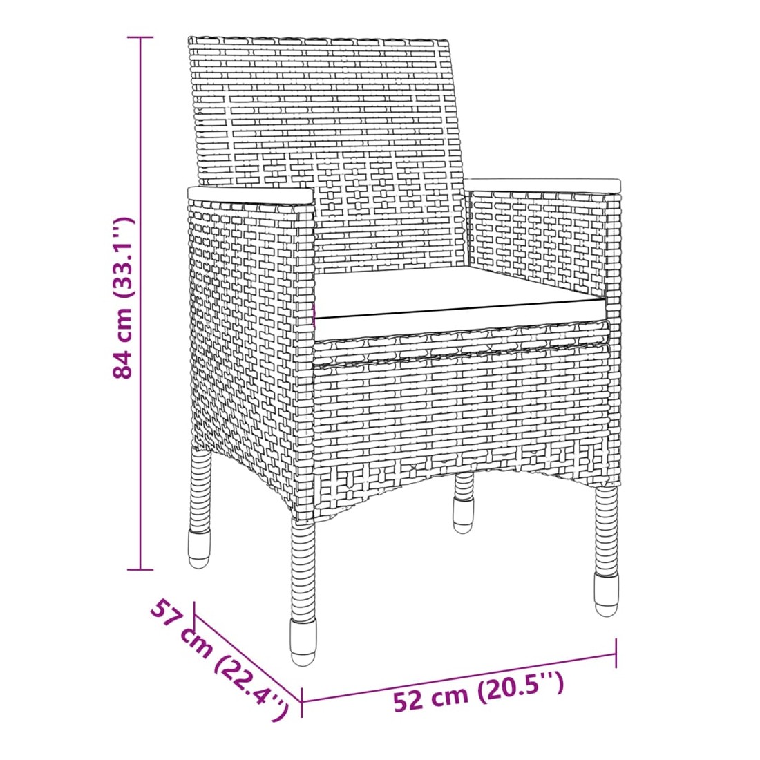 • Dimensions de la chaise : 52 x 57 x 84 cm (l x P x H)