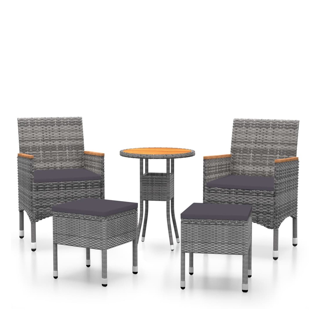 Ajoutez une touche de style moderne avec cet ensemble de meubles de jardin, conçu pour compléter n'importe quel espace, tel que le patio, le bord de la piscine, le porche, la terrasse et le balcon. Avec un cadre en acier enduit de poudre enveloppé en résine tressée, cet ensemble de meubles d'extérieur est durable. Le dessus de table est fait de bois d'acacia massif, un bois franc avec des grains denses. De plus, le coussin d'assise rembourré épais ajoute un confort supplémentaire à la chaise. Remarque : afin de prolonger la durée de vie des meubles d'extérieur, nous vous recommandons de les protéger avec une housse imperméable.