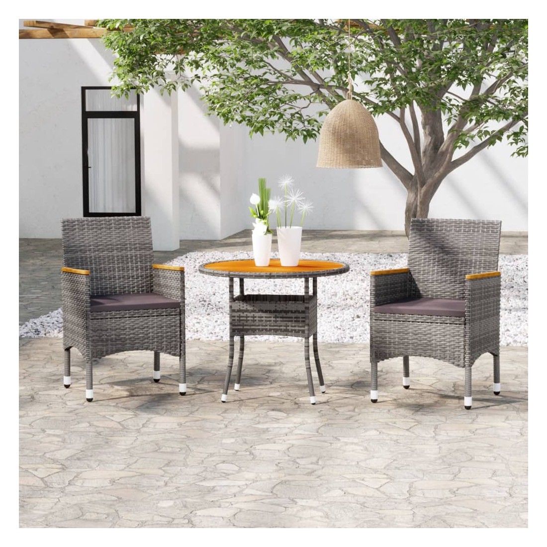 Ensemble à manger de jardin 3 pcs Résine tressée Gris