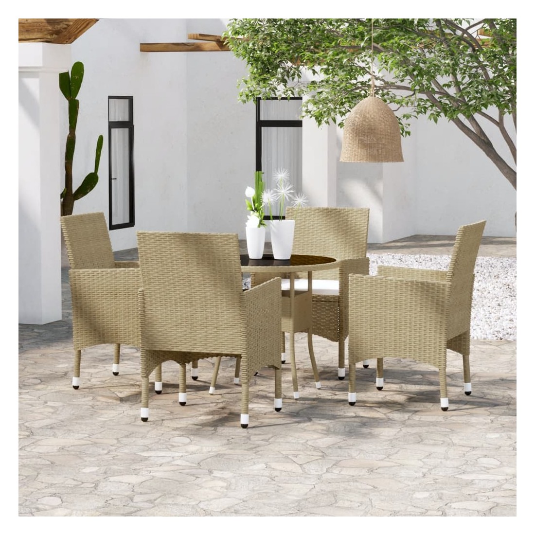 Ensemble à manger de jardin 5 pcs Résine tressée Beige
