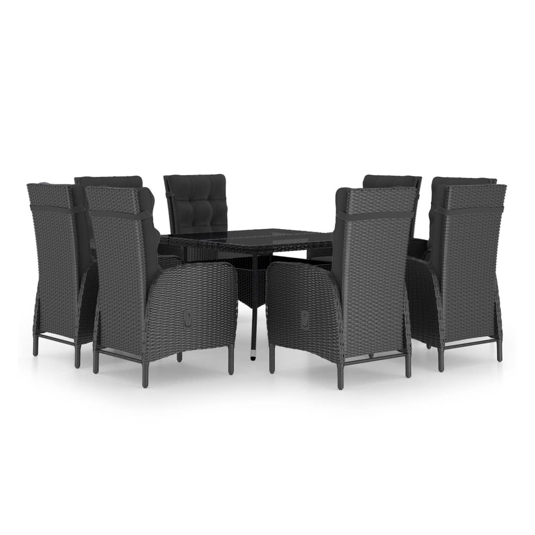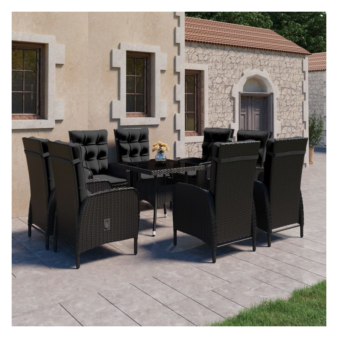 Ensemble à Manger de jardin 9 pcs Résine tressée et verre Noir