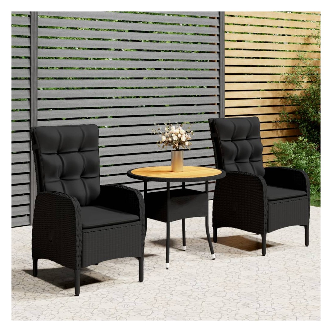 Ensemble de bistro de jardin 3 pcs Résine tressée Noir