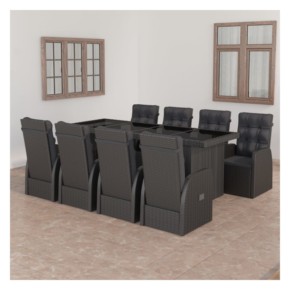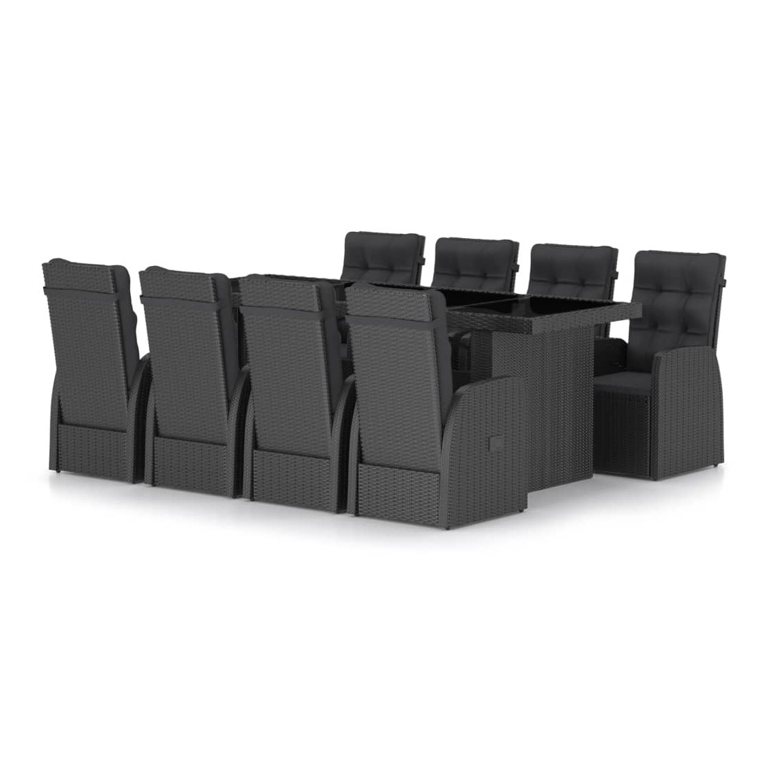 Ensemble à manger d'extérieur 9pcs coussins résine tressée noir